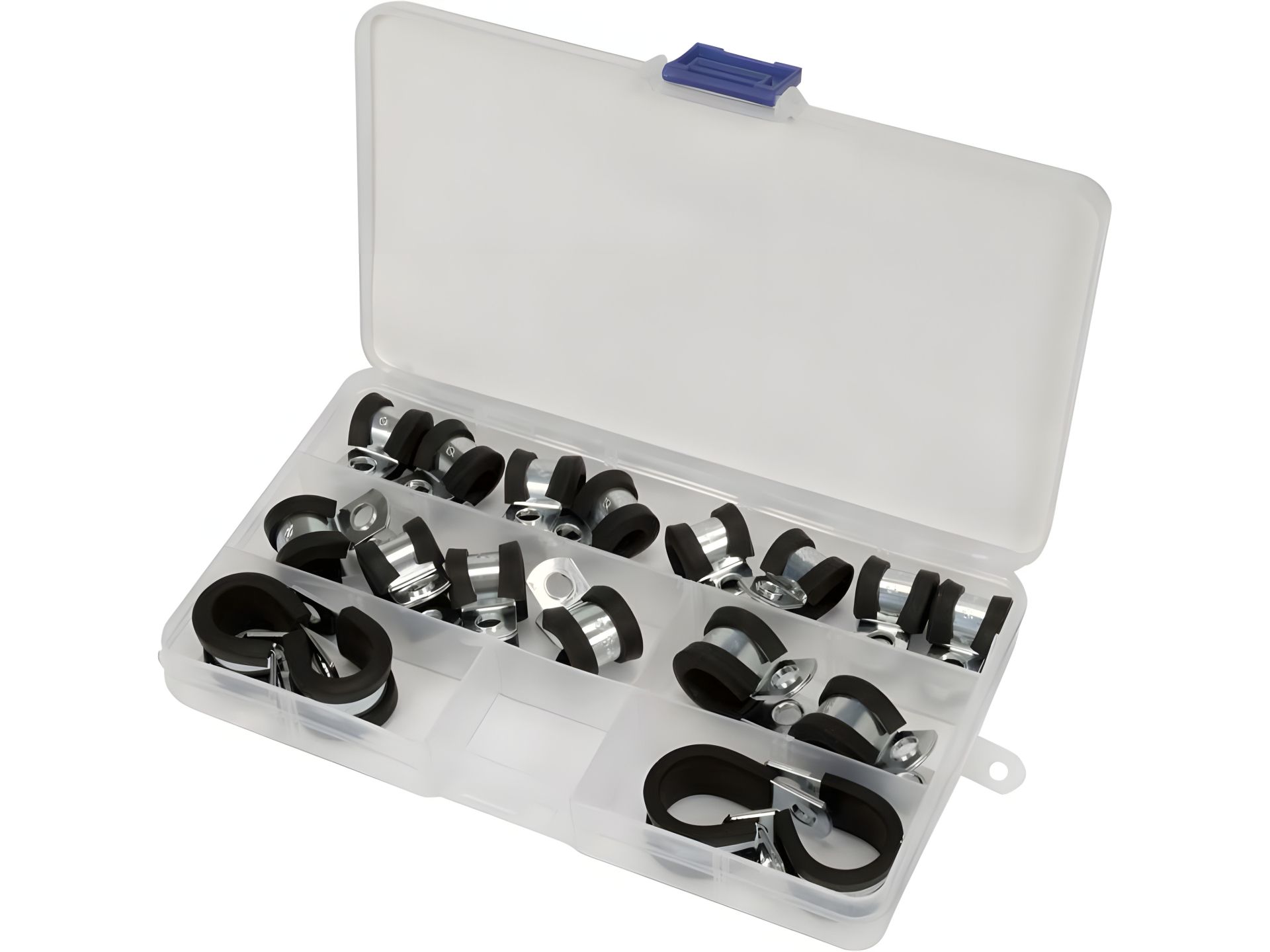 Металлические хомуты с резиновым покрытием: Ø=6, 8, 10, 13, 16 мм, 18 шт Yato YT-067833