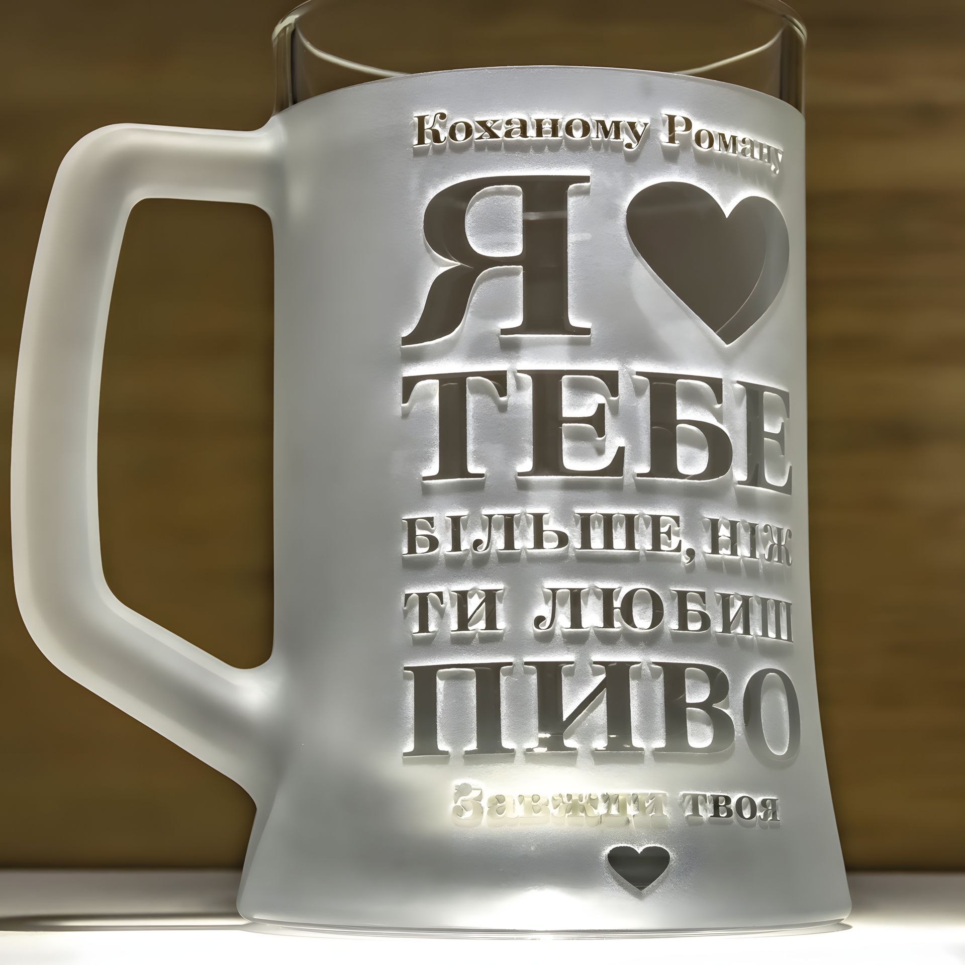 ΠΠ΅ΡΡΠΎΠ½Π°Π»ΠΈΠ·ΠΈΡΠΎΠ²Π°Π½Π½ΡΠΉ Π±ΠΎΠΊΠ°Π» Π΄Π»Ρ ΠΏΠΈΠ²Π° Ρ Π³ΡΠ°Π²ΠΈΡΠΎΠ²ΠΊΠΎΠΉ "Π― Π»ΡΠ±Π»Ρ ΡΠ΅Π±Ρ Π±ΠΎΠ»ΡΡΠ΅, ΡΠ΅ΠΌ ΡΡ Π»ΡΠ±ΠΈΡΡ ΠΏΠΈΠ²ΠΎ" SandDecor