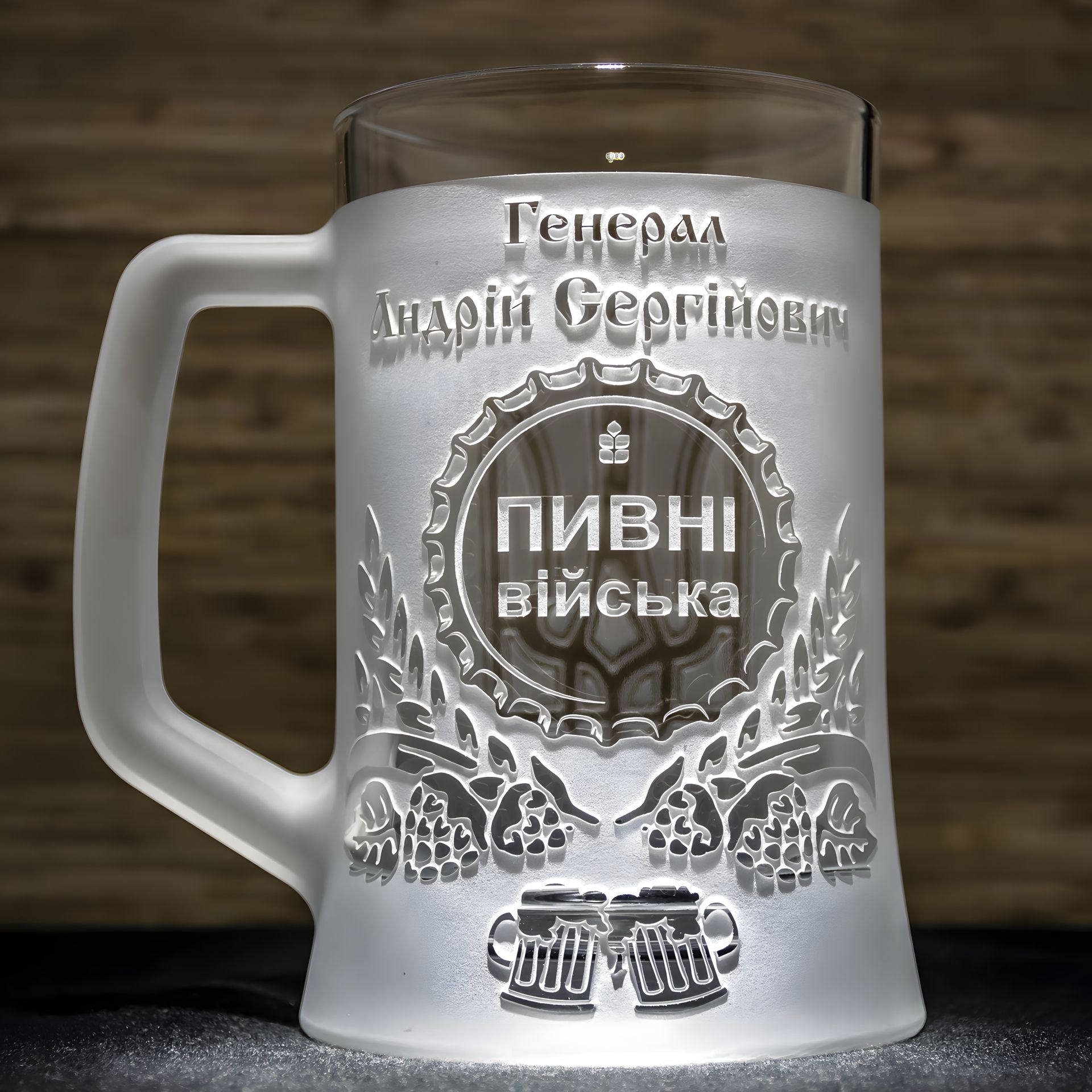Подарочный именной пивной бокал с гравировкой "Генерал пивных войск", матовый