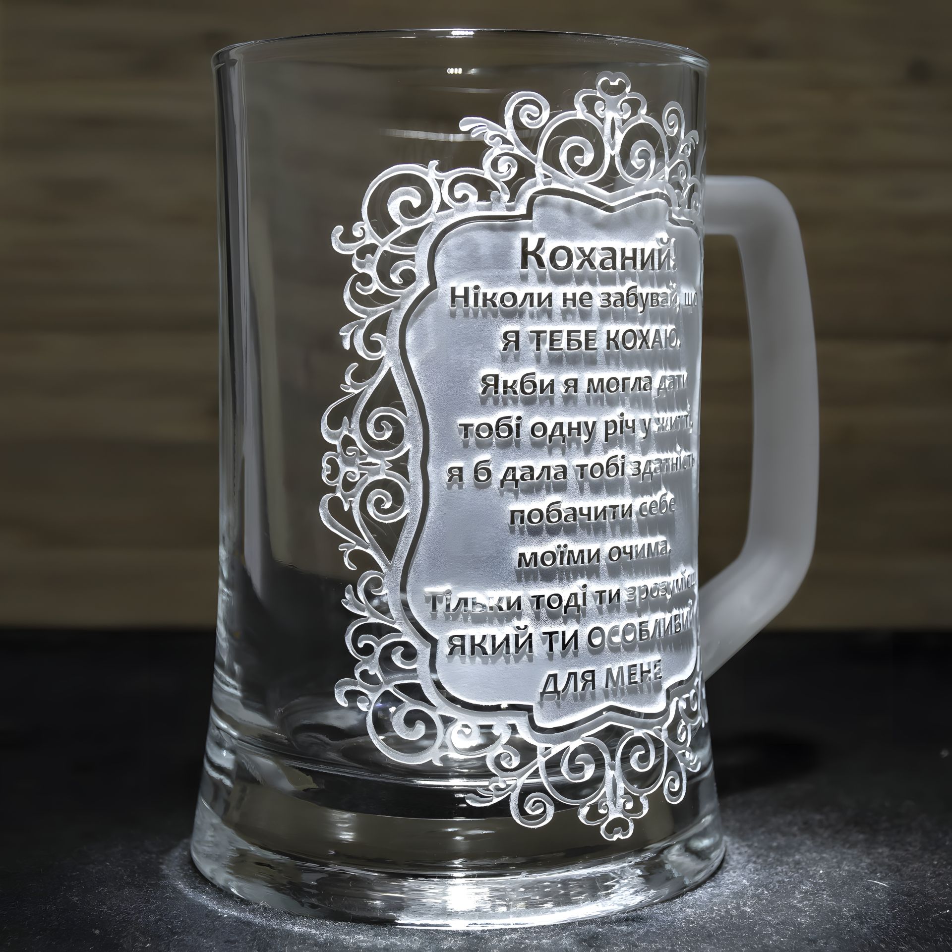 Именной пивной бокал с гравировкой текста-поздравления в подарочной коробке