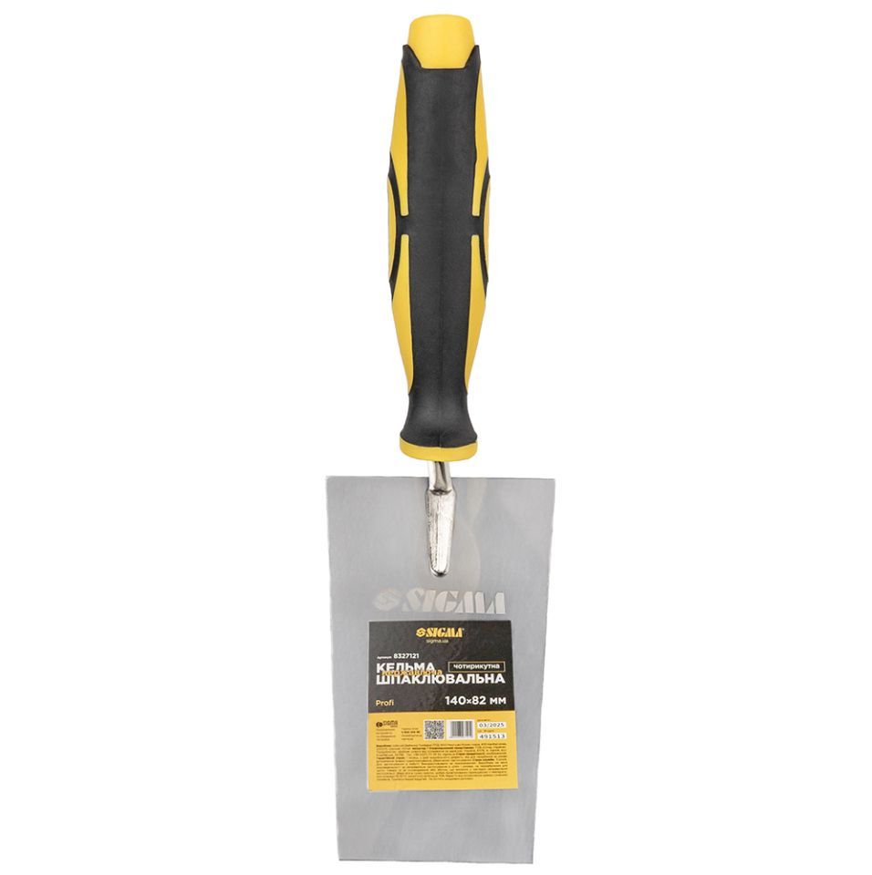 Кельма нержавеющая шпаклевочная четырехугольная Profi 140×82мм SIGMA (8327121) предназначена для перемешивания и набрасывания штукатурного раствора на поверхность.
