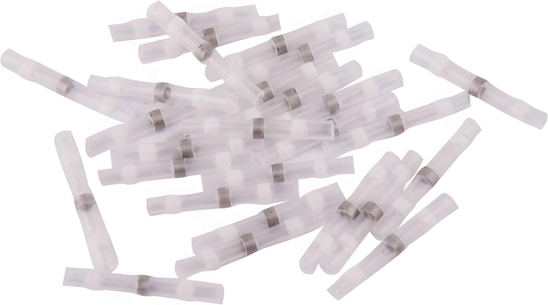 Кембрики термоусадочные с оловянным кольцом посередине и двумя кольцами термоклея по бокам, дополнительно уплотняют соединения. Помогают быстро и надежно установить водонепроницаемое электрическое подключение.