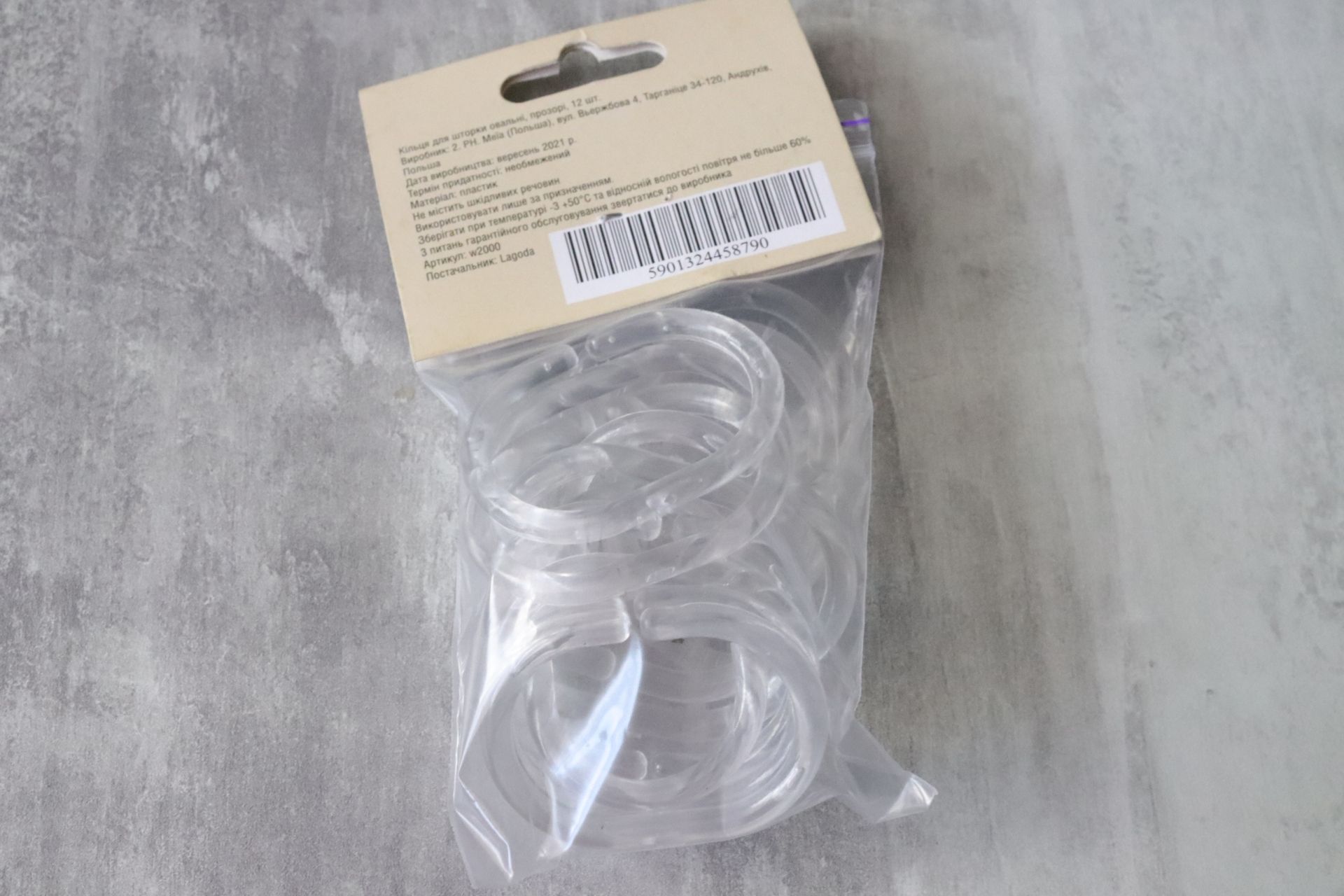 Комплект прозрачных колец для штор, 12 шт