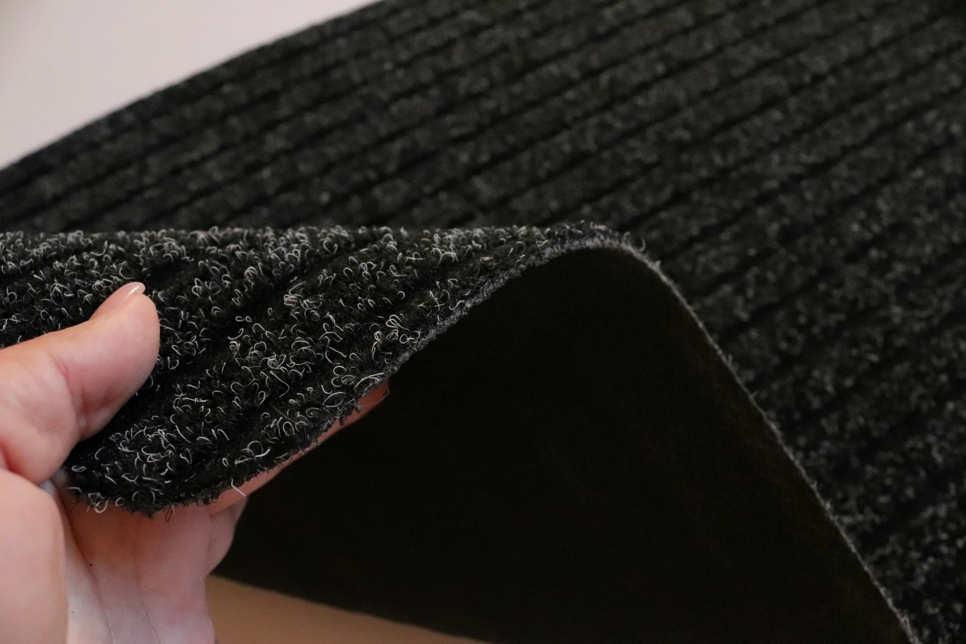 Килимок вхідний "Prazek" чудово вбирає вологу. З нижнього краю нанесена гумова основа, яка зменшує ковзання та не пропускає воду на підлогу.
