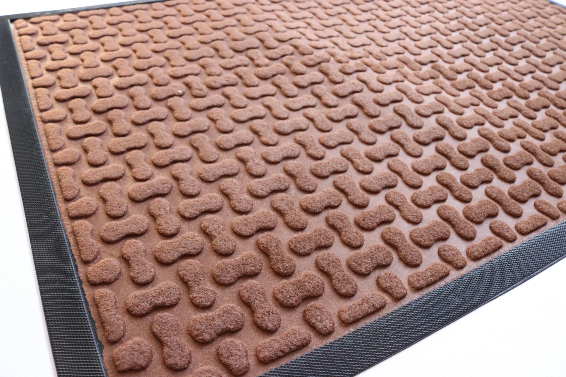 Килимок вхідний велюровий має борт по краю, який запобігає витіканню води. З нижнього краю нанесена гумова основа, яка зменшує ковзання та не пропускає воду на підлогу.