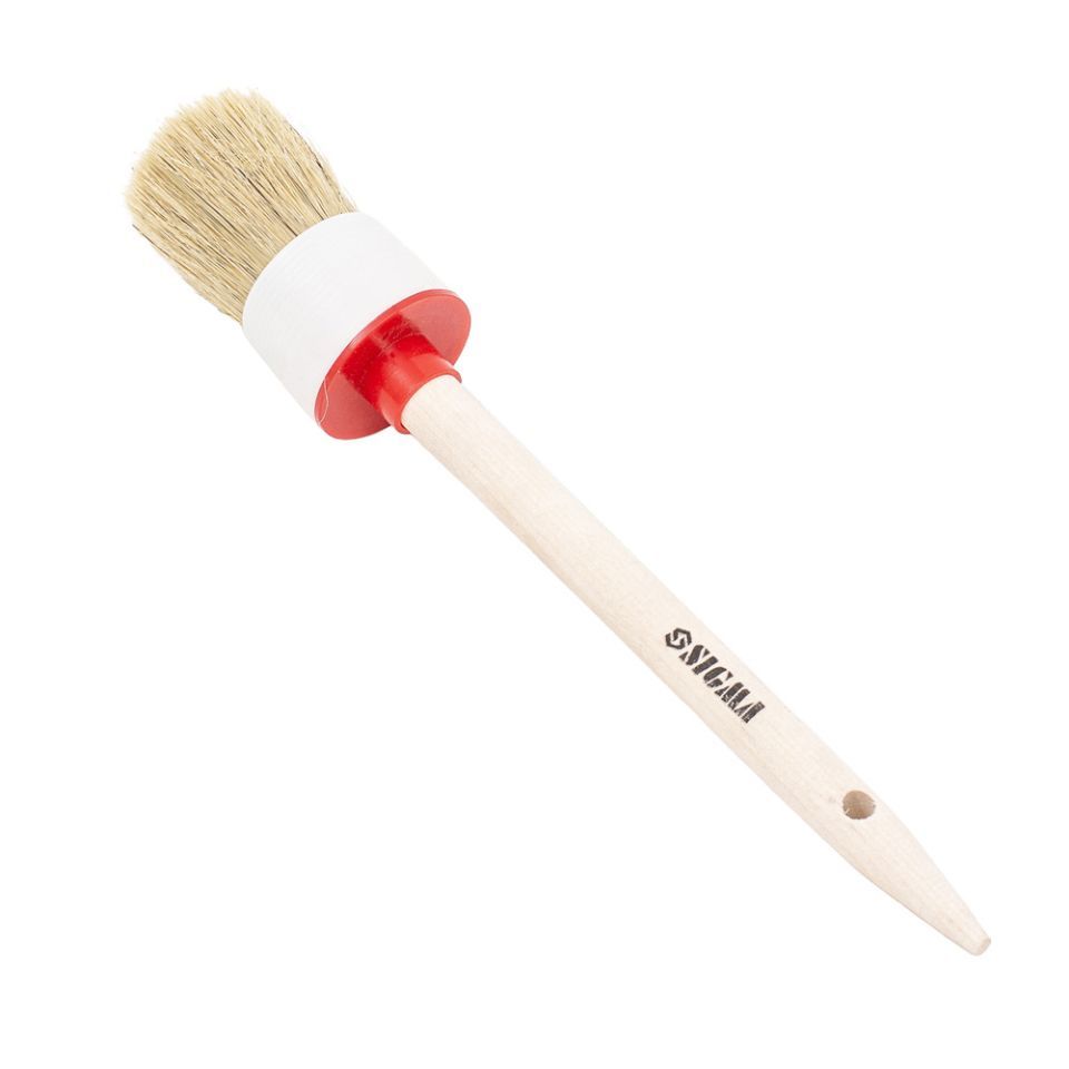 Кисть круглая №08 SIGMA (8303341) - сделана из натуральной щетины и имеет деревянную ручку, что позволяет использовать ее со всеми типами ЛКМ.