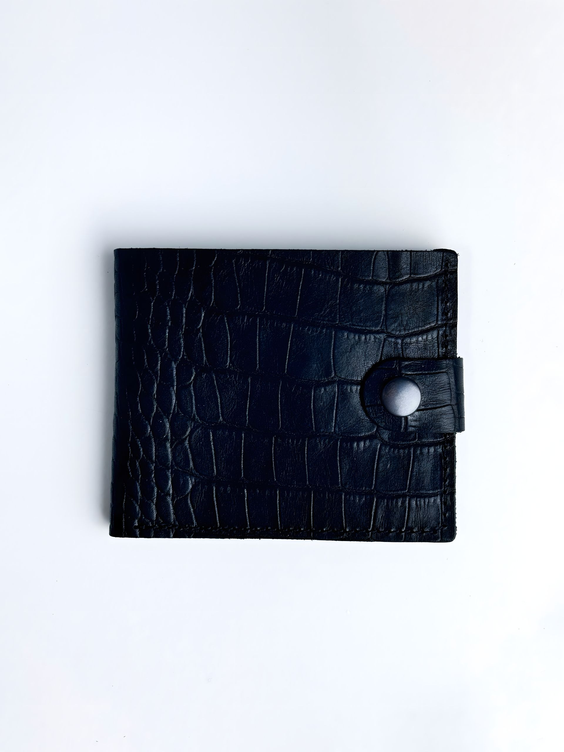Класичний гаманець із натуральної гладкої шкіри тиснення крокодил чорний