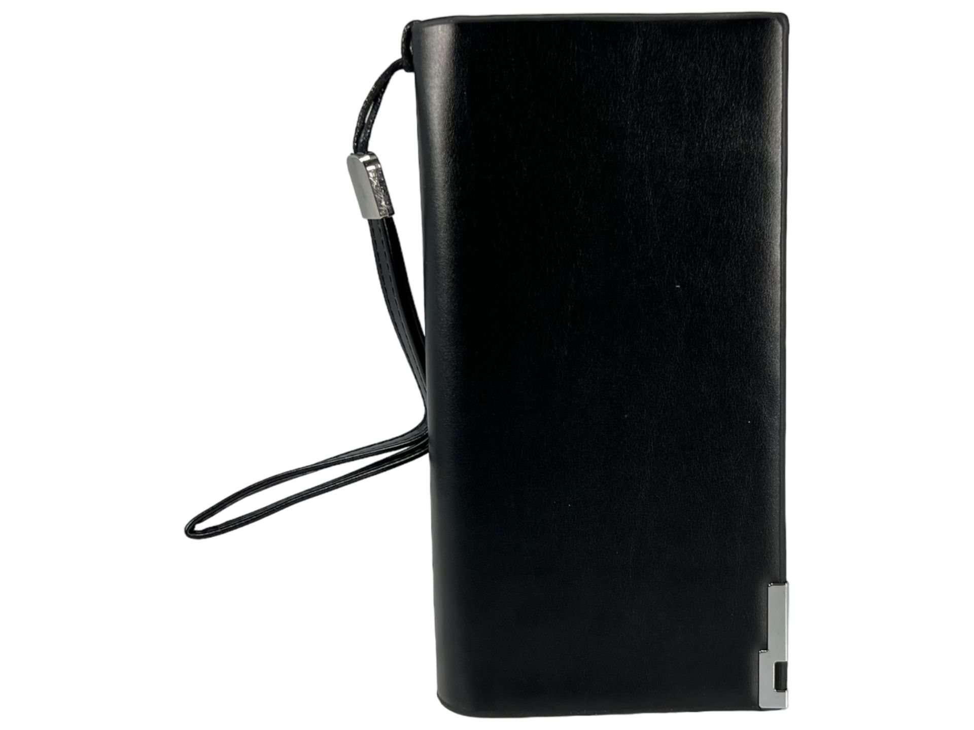 Элегантный дизайн: Черный цвет и горизонтальный форм-фактор придают этому портмоне классический вид, который подходит как для деловых встреч, так и для повседневного использования. Размеры 20*10*3 см делают его компактным и удобным для ношения в кармане или сумке.