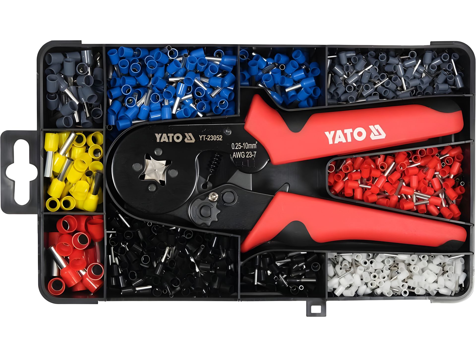 Клещи для втулочных наконечников проводов L=175мм, с насадкой. 0.25-10 мм² 1200 шт Yato YT-23052