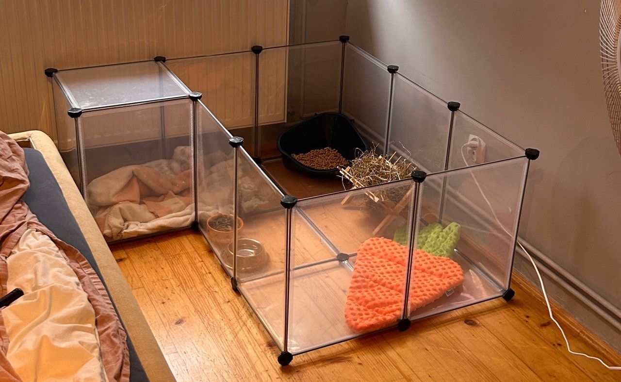 В вольере морским свинкам, хомякам, ежам и кроликам предоставлена большая территория, где они могут играть, исследовать и развлекаться. Гладкие пластины размером 40 х 30 см и 30 х 30 см безопасны для их лап, не оставляя им шансов выбраться наружу.