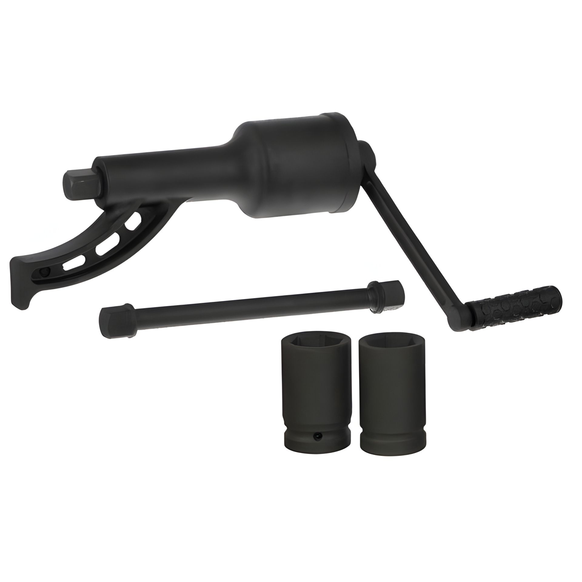 Наличие планетарного редуктора позволяет значительно увеличить крутящий момент, прикладывая при этом немного усилий. Благодаря передаточному числу 1:78 и крутящему моменту 7000 Нм вы сможете быстро ослабить сильно прикипевшие крепежи, не срывая шляпки болтов. Далее, до полного откручивания гаек, удобнее продолжить работать удлинителем с рукояткой и торцевой головкой.