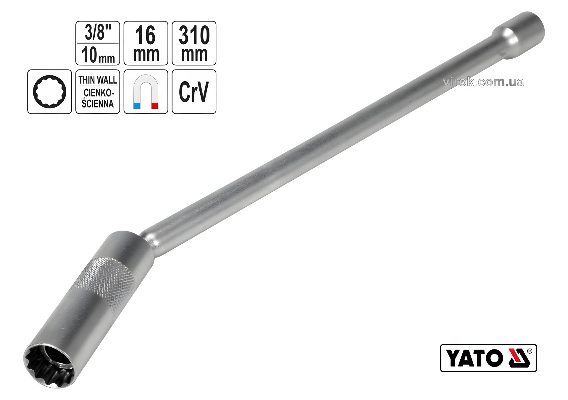 Ключ для свечей зажигания двенадцатигранный магнитный 3/8" М16 x 310 мм Cr-V Yato YT-08164