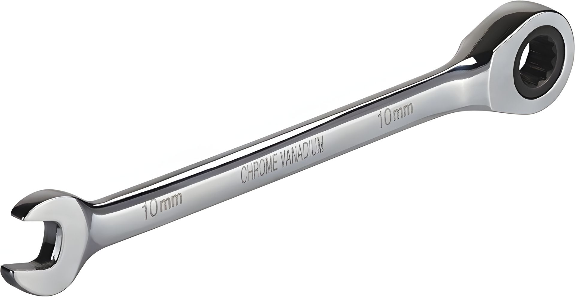 Ключ комбинированный с трещоткой (с реверсом,72 зубца) изготовлен из хром-ванадиевой стали, твердость 44-51 HRC. Применяются для работы с резьбовыми соединениями .