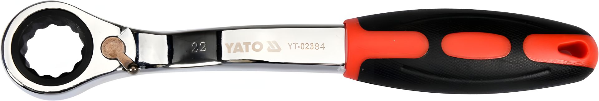 Накидной ключ, изогнутый с трещоткой : М22, HRC 42-48, Cr-V, эргономичная прорезиненная ручка Yato YT-02384