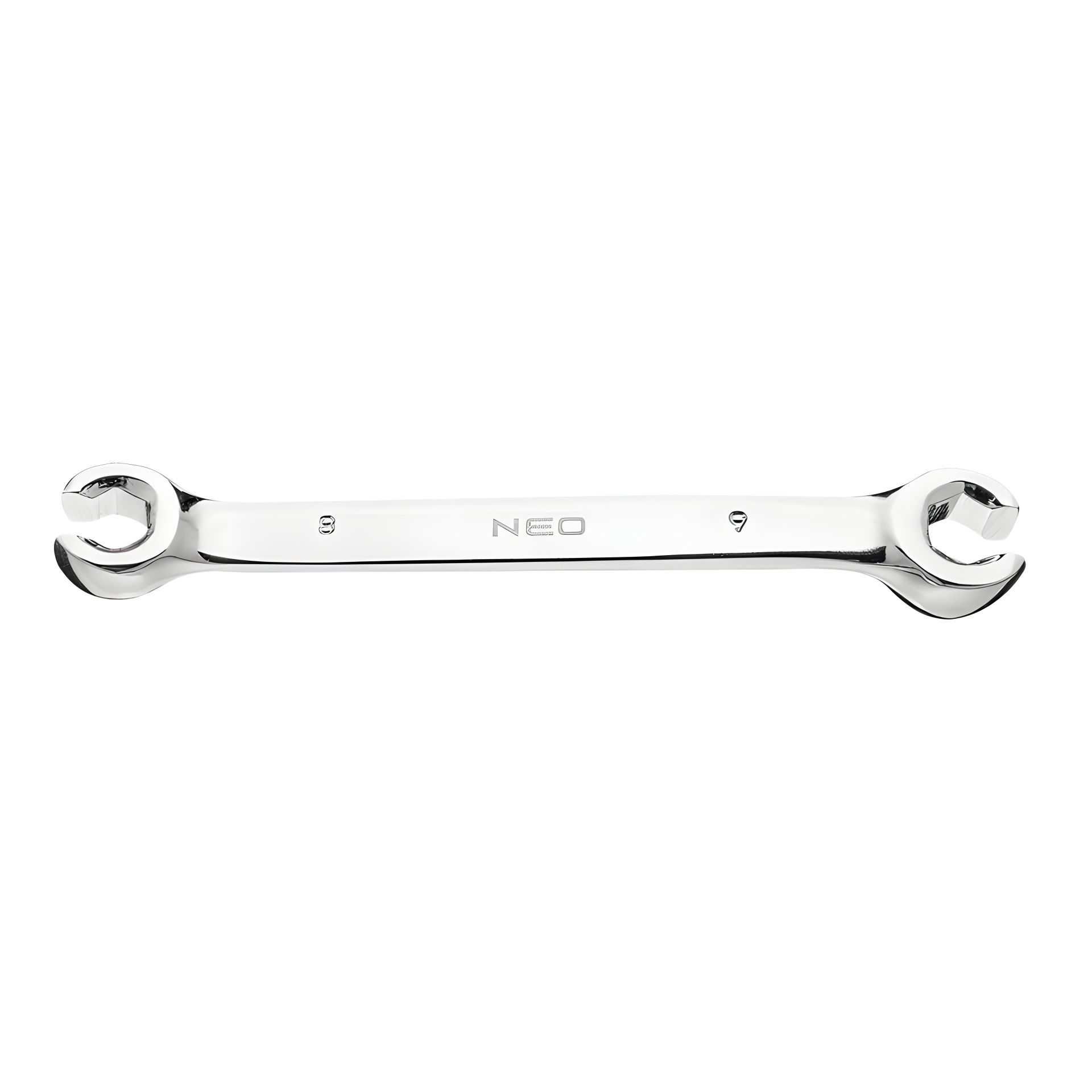 Двухсторонний разрезной ключ 8х9 мм, кованый, усиленный, угол изгиба 15°, сталь CrV NEO 09-141