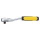 Ключ-трещотка имеет небольшой крутящий момент, работает плавно и мягко, что обеспечивает комфорт во время работы. Конструкция предусматривает кнопку быстрого сброса для быстрой смены торцевых головок.