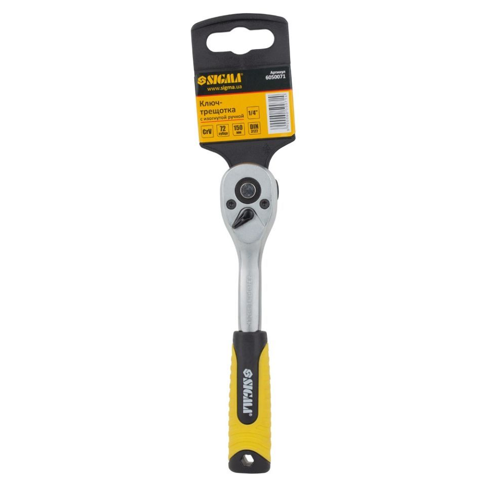 Ключ-трещотка с изогнутой рукояткой 1/4", длина 150мм, 72 зубца, CrV, SIGMA 6050071
