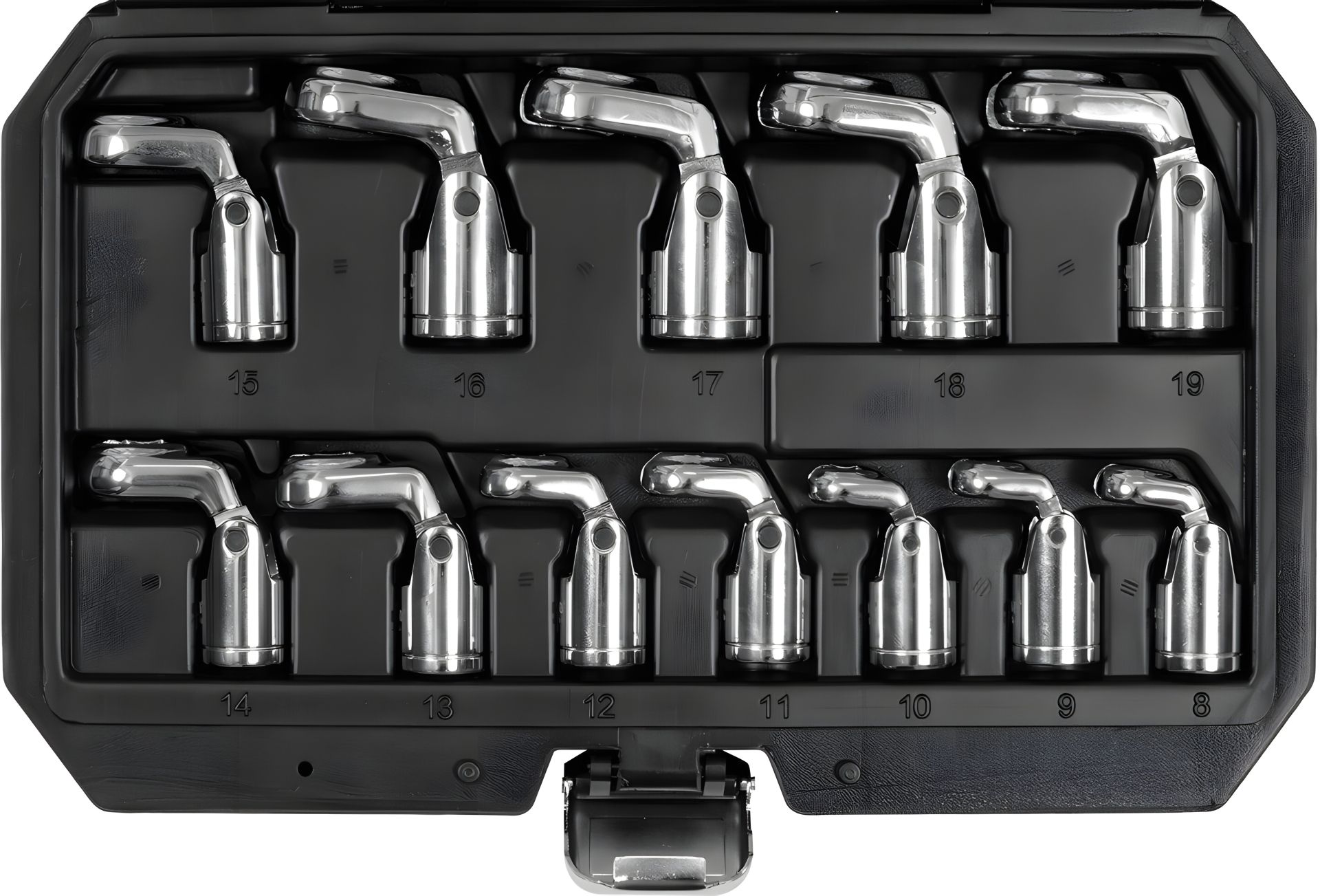 Торцевые ключи на шарнире, открытые: к квадрату 3/8" М8-19, 12 шт Yato YT-38550