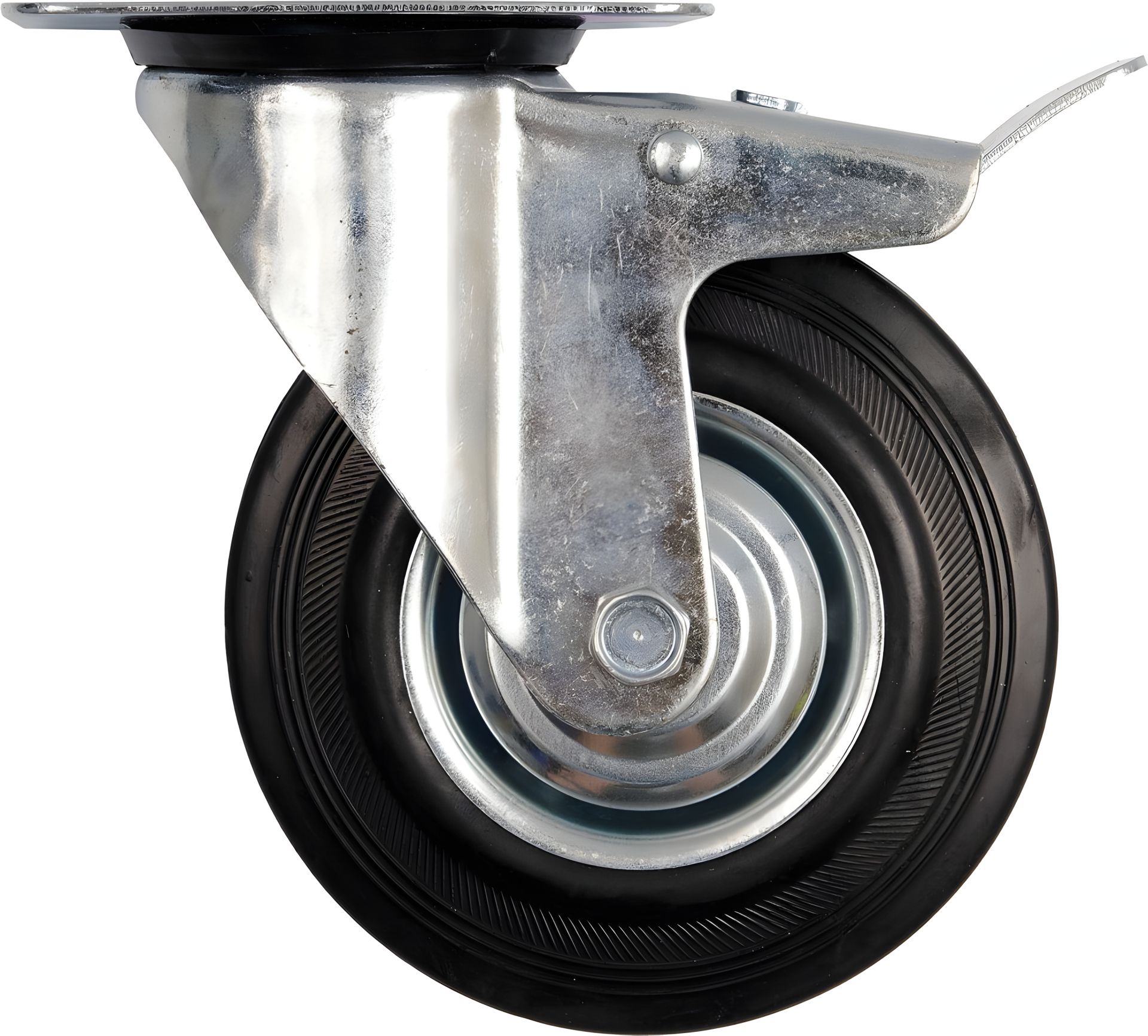 Колесо к коляске Ø= 160 мм, b= 40 мм VOREL с вращающейся опорой и тормозом; h= 195 мм, нагрузи.- 130кг
