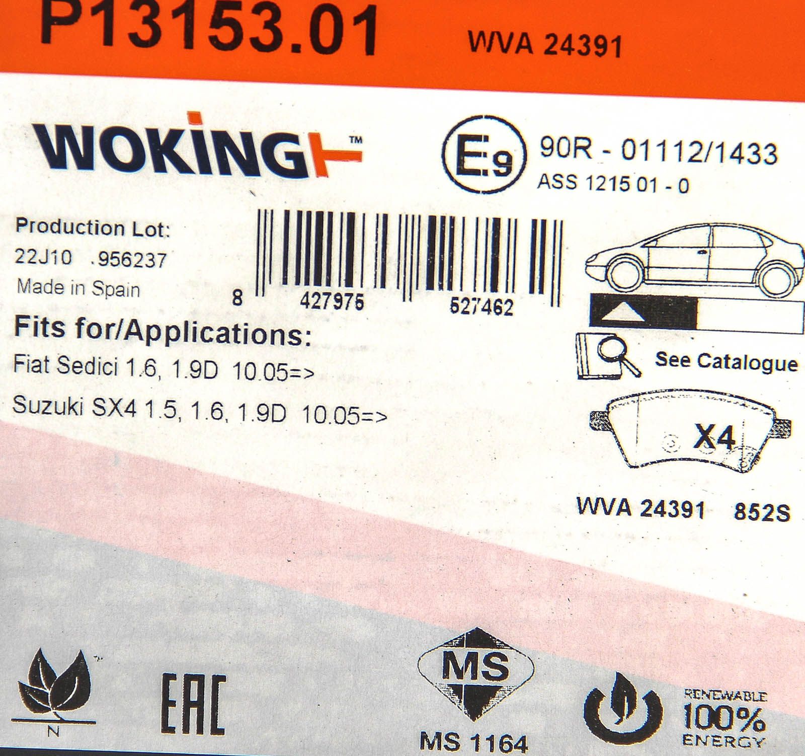 Передние тормозные колодки Suzuki SX4 04, WOKING (P1315301)