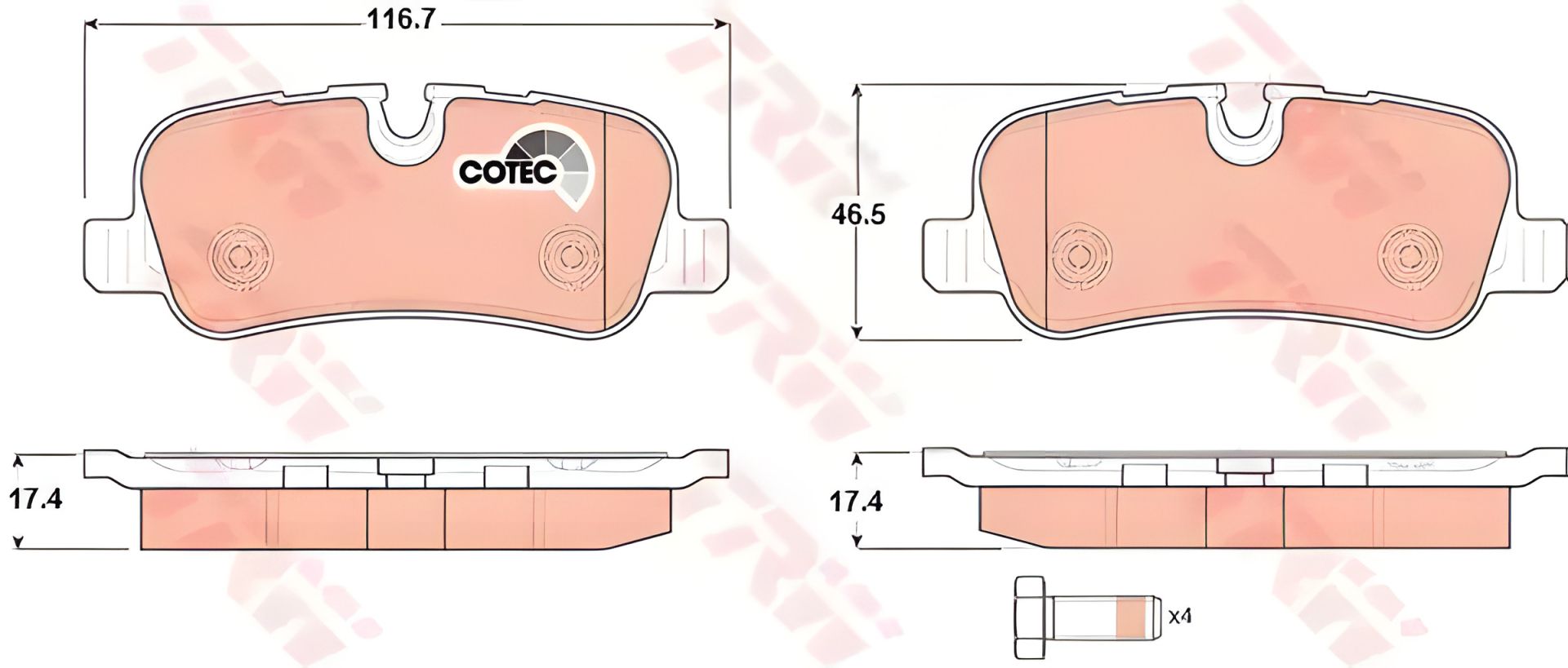 Задние дисковые тормозные колодки для LAND ROVER, TRW (GDB1632)