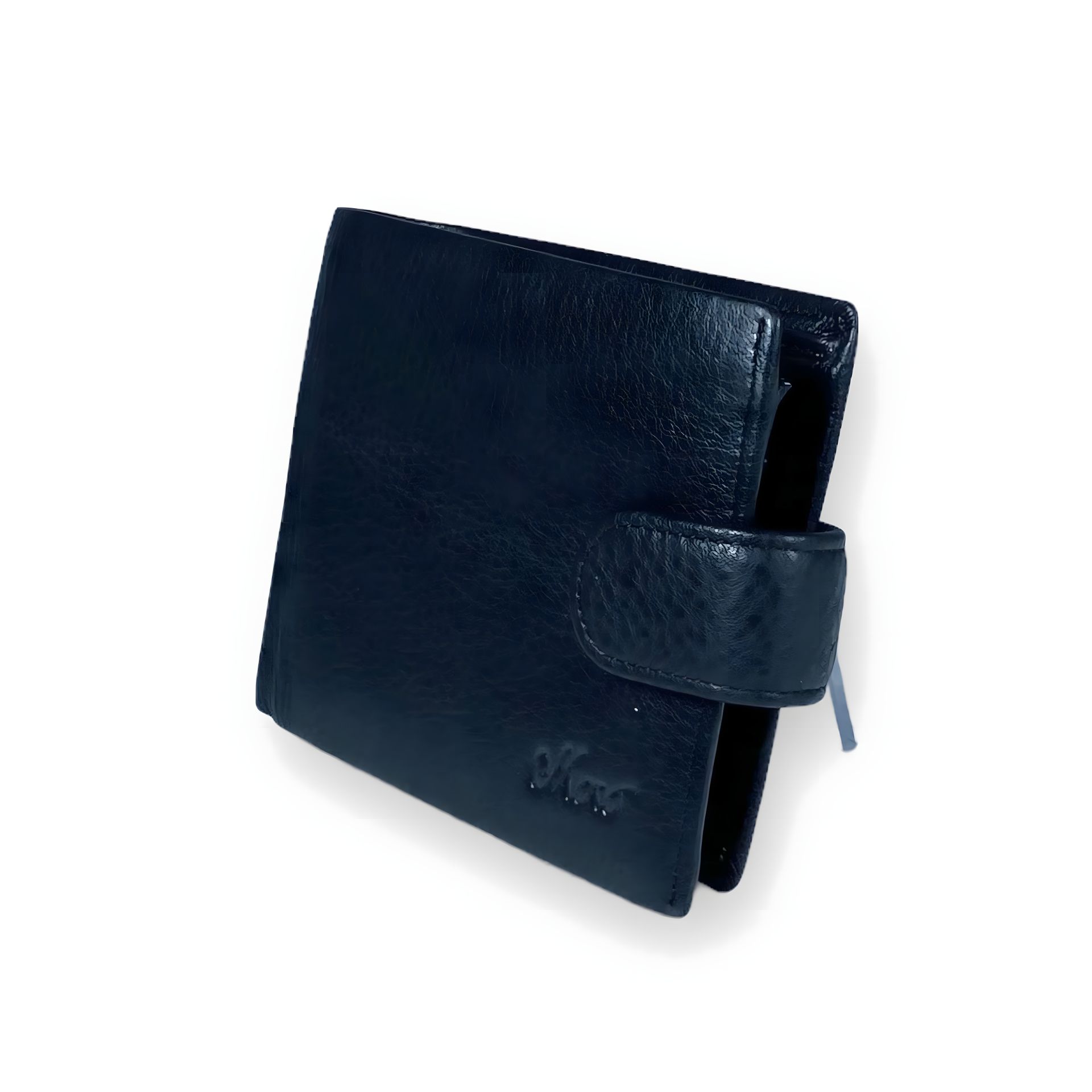 Компактный мужской кожаный кошелек с кнопочной застежкой, цвет черный