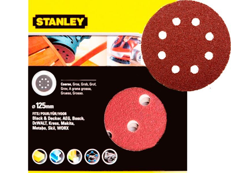 Компл. абразивных листов 5 ед. Ф125 мм, 180 гр/мм2, коричневый корунд, (д/ексцентрикових шліфмашин) STANLEY STA32042