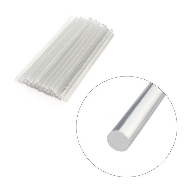 Стержни изготовлены из высококачественного сырья марки Dupont. Такой термоклей состоит из сополимера ЭВА, который нетоксичен, не выделяет запаха и не содержит растворителей. Полупрозрачный высоковязкий клей позволяет надежно скреплять различные материалы, затвердевая по мере остывания через 30-40 секунд.