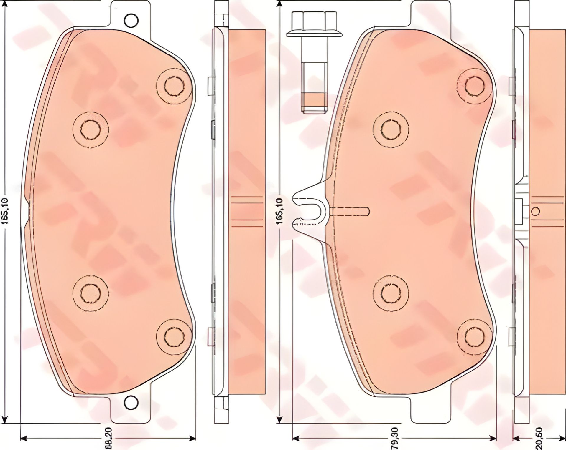 Набор тормозных колодок MB (BBDC), MB GLK-CLASS, MB E-CLASS, TRW (GDB1798)
