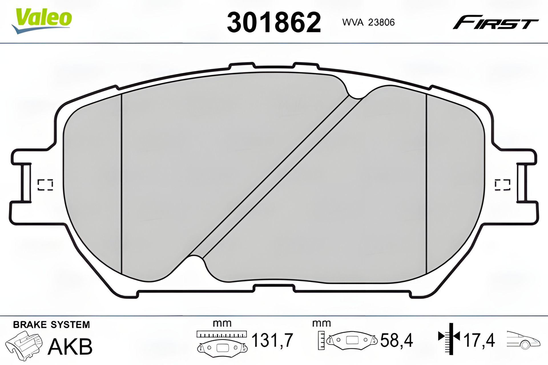 Тормозные колодки TOYOTA WISH, TOYOTA SOLARA, TOYOTA CAMRY, VALEO (301862)