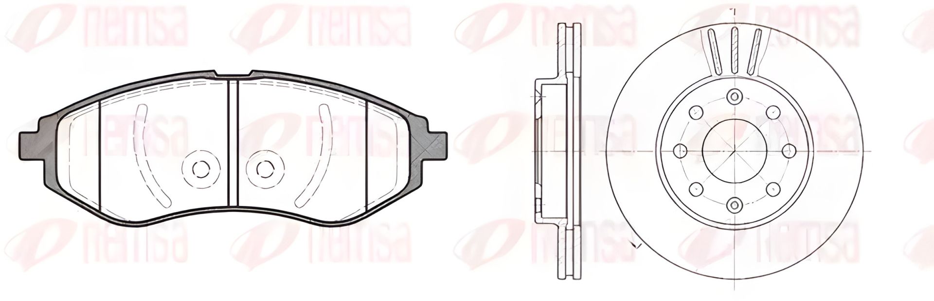 Тормозной комплект с двумя дисками и четырьмя колодками для CHEVROLET AVEO и DAEWOO KALOS, REMSA (898600)