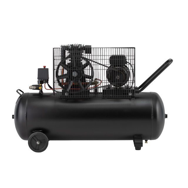 Компрессор имеет ременной привод от электродвигателя к головке с двумя стальными цилиндрами. Это обеспечивает эффективное охлаждение и уменьшает нагрузку на двигатель. Медная обмотка двигателя увеличивает ресурс службы, повышает прочность и выносливость компрессора, что подтверждает 3 года гарантии.