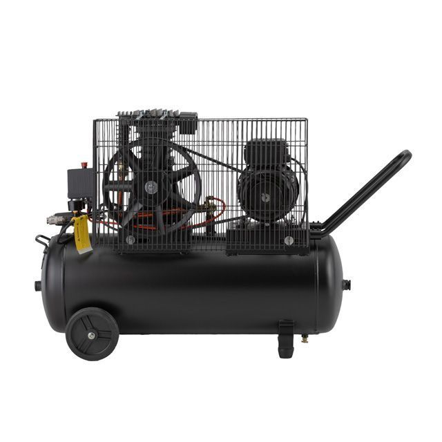 Компрессор имеет ременной привод от электродвигателя к головке с двумя стальными цилиндрами. Это обеспечивает эффективное охлаждение и уменьшает нагрузку на двигатель. Медная обмотка двигателя увеличивает ресурс службы, повышает прочность и выносливость компрессора, что подтверждает 3 года гарантии.