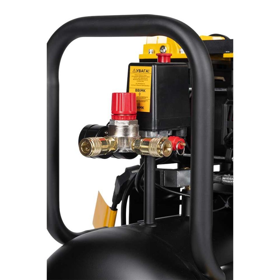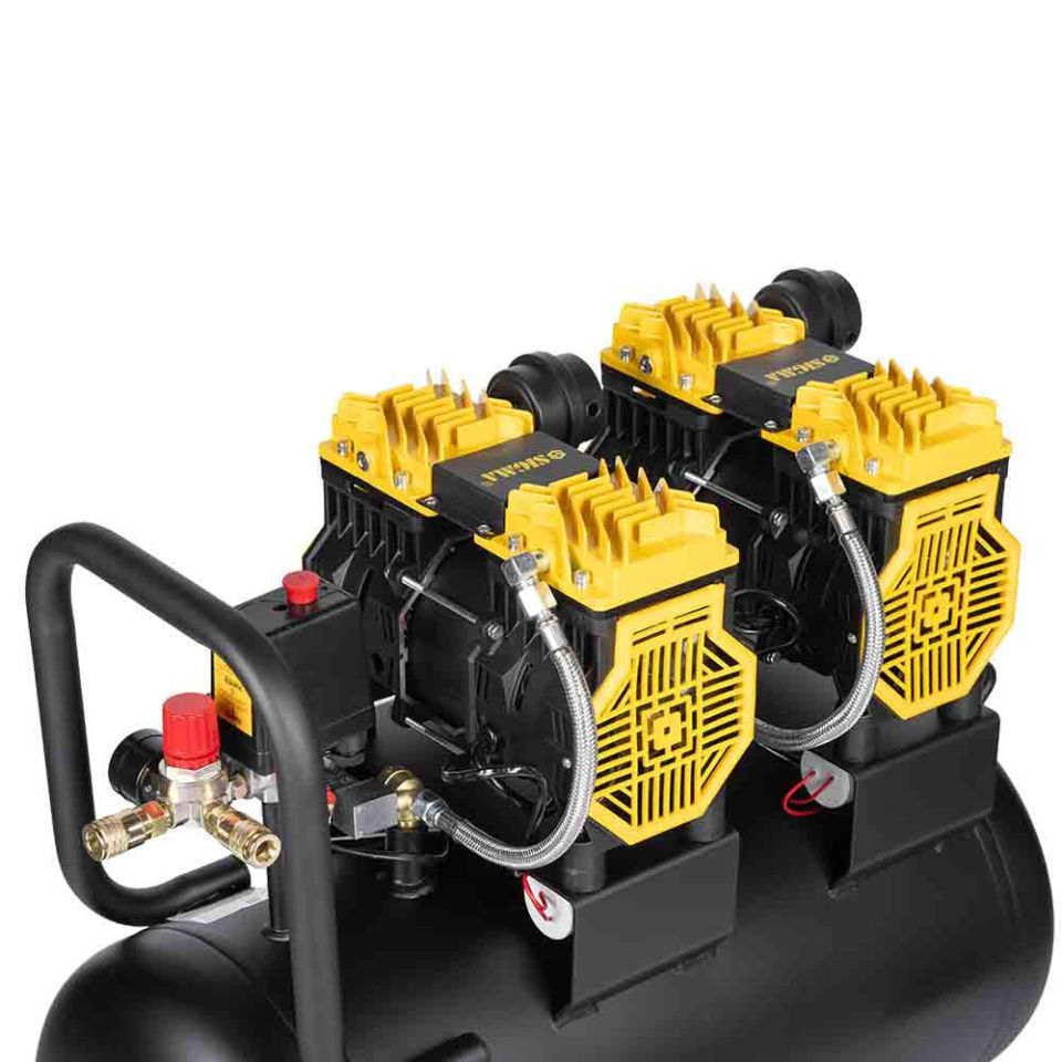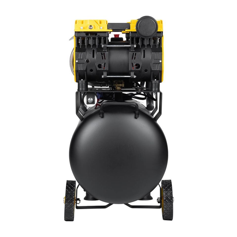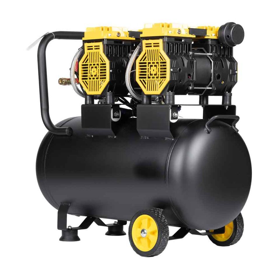 Данная модель компрессора работает без масла, поэтому не требует техобслуживания по контролю и доливке масла. Отличается чистым воздухом, который не содержит каких-любо примесей. Колеса обеспечивают устойчивое положение на поверхности, а резиновая подушечка снижает уровень вибрации.