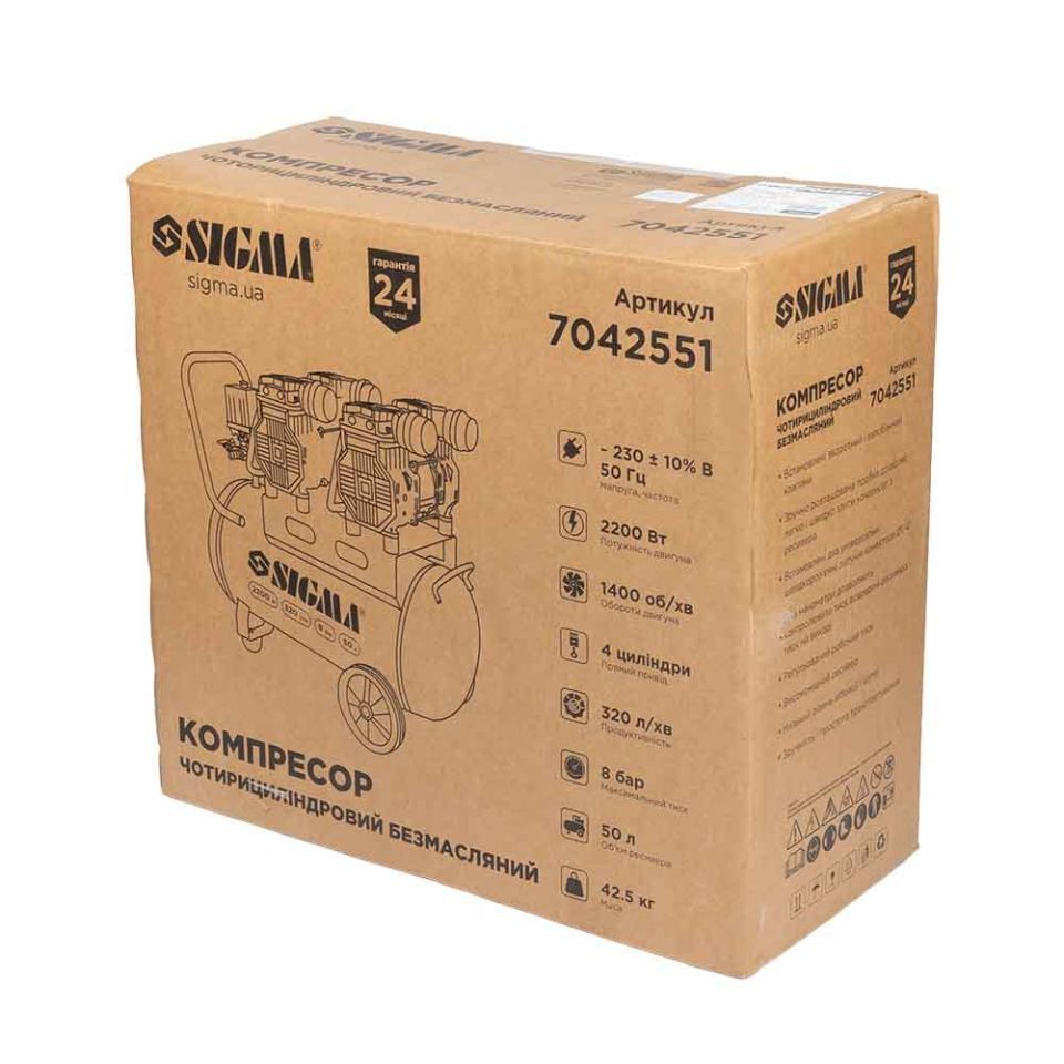 Четырехцилиндровый безмасляный компрессор 2.2 кВт 1400 об/мин SIGMA 7042551