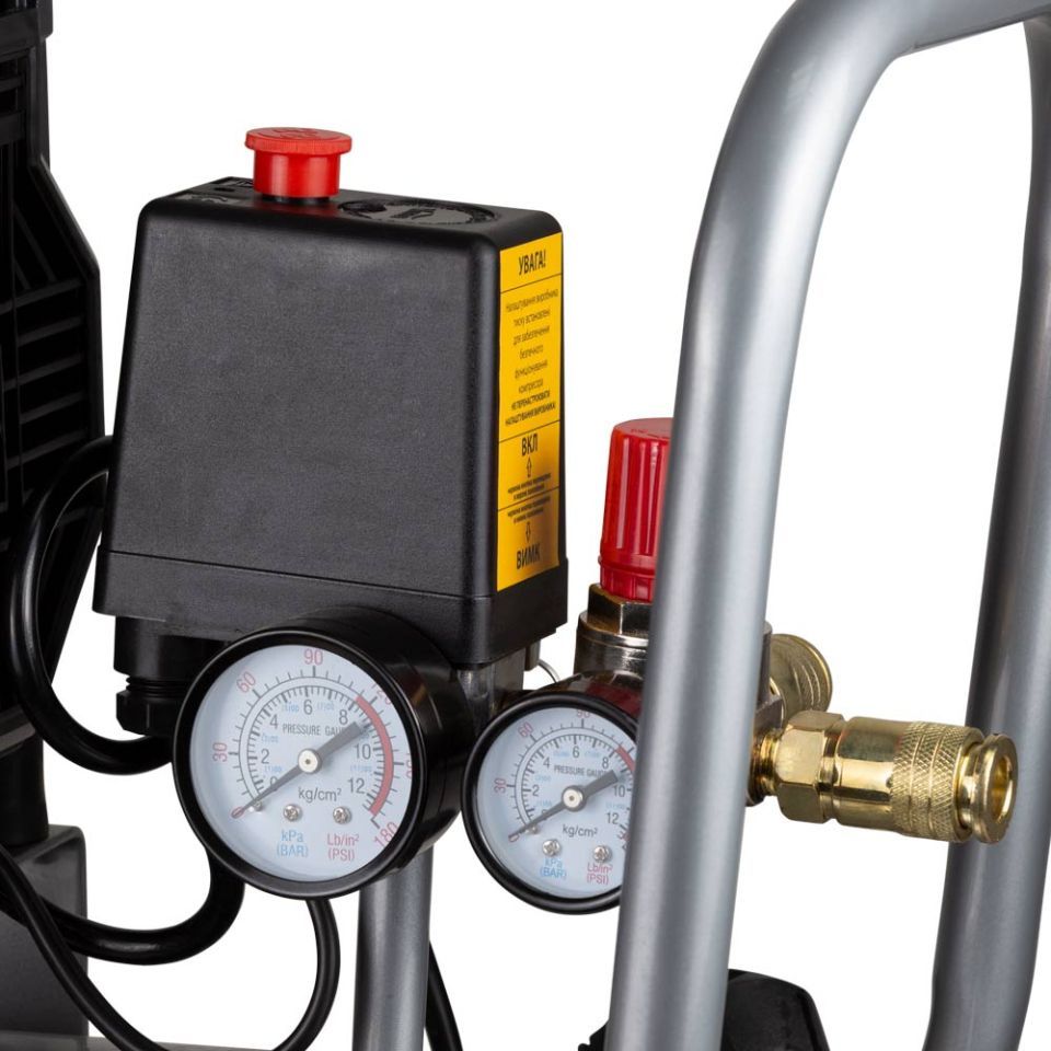 - Два манометра позволяют контролировать давление внутри ресивера и давление на выходе