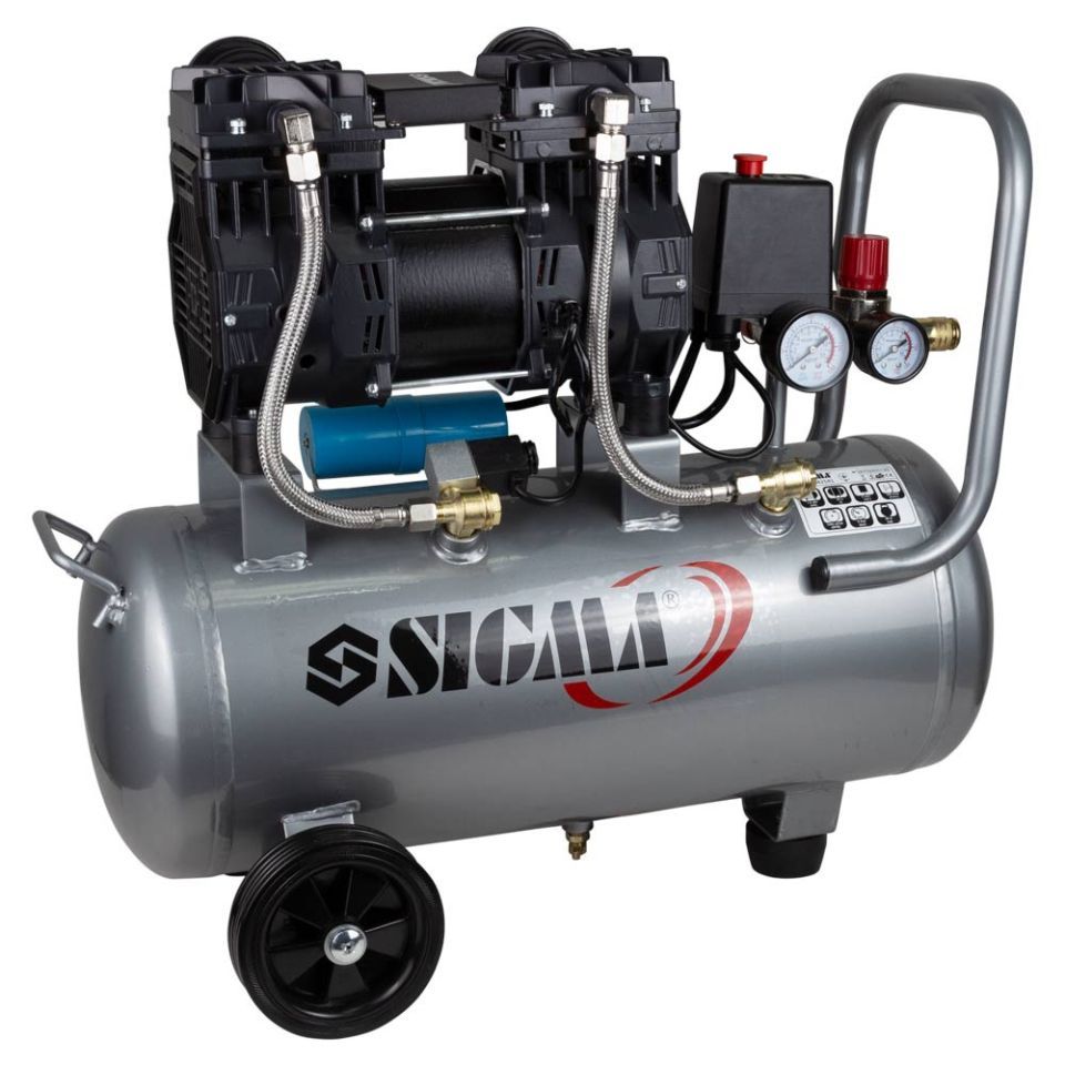 Компрессор двухцилиндровый безмасляный 1.5кВт 209л/мин 8бар 30л SIGMA (7042541) предназначен для нагнетания сжатого воздуха с последующей его подачей под давлением в различные типы пневмоинструмента.