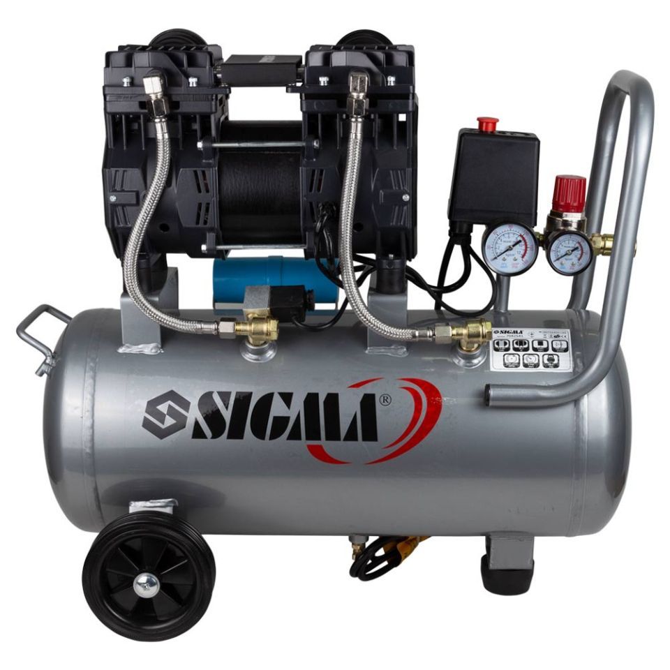 Компрессор двухцилиндровый безмасляный 1.5кВт 209л/мин 8бар 30л SIGMA 7042541
