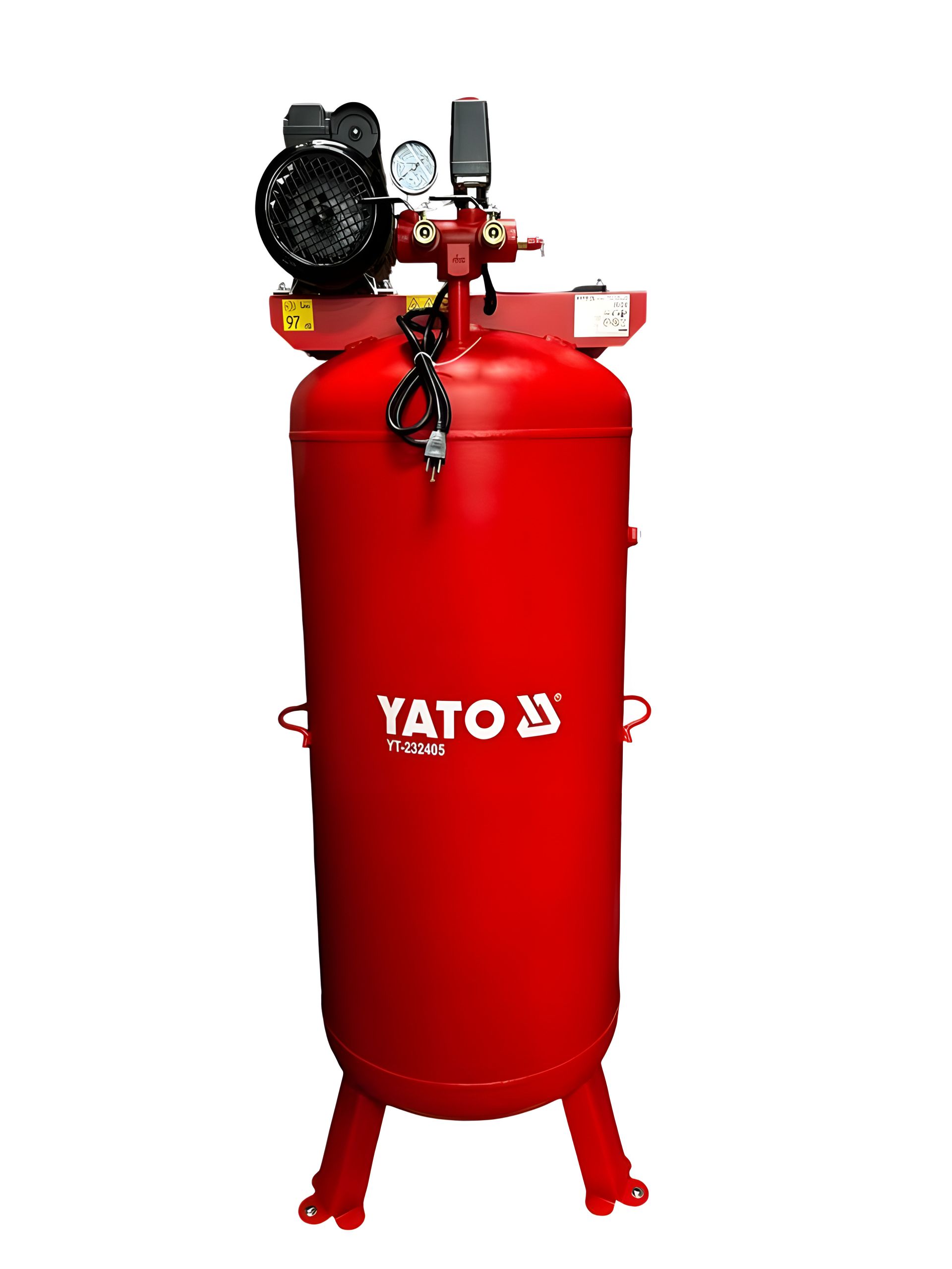 Сетевой компрессор 230 В, 2.8 кВт, давление до 8 Bar, подача воздуха 290 л/мин, ресивер 227 л, Yato YT-232405