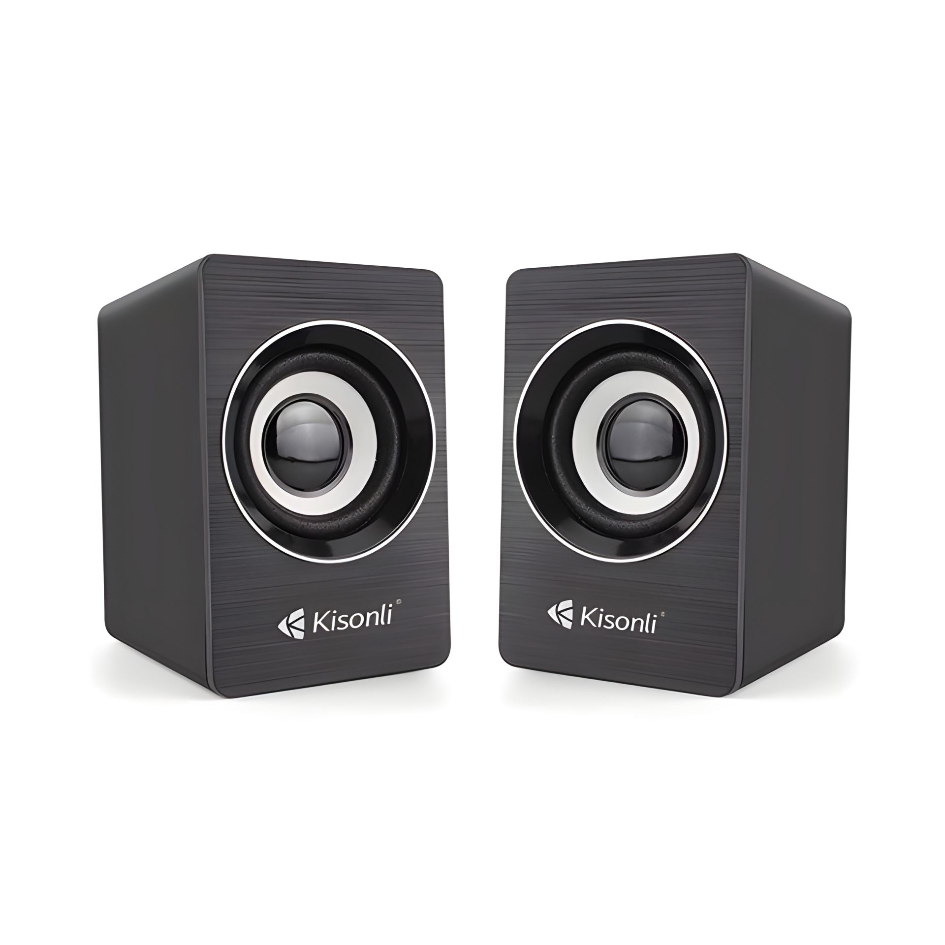 Kisonli A-707 - это прекрасный экземпляр компьютерных колонок. Эти колонки особенно понравятся владельцам ноутбуков, встроенные динамики которых не способны выдать достаточную мощность и громкость. Новейшие технологии в производстве комплектующих позволили достичь хорошего уровня громкости и чистоты звучания, сохранив при этом небольшой размер компьютерных колонок. С источником звука они соединяются с помощью кабеля с разъемом 3.5 мм Jack, а питаются от USB.