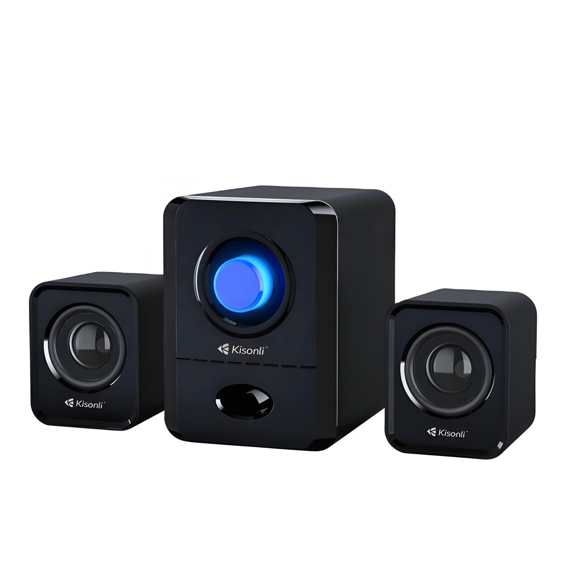 - Kisonli создана с учетом современных потребностей: компактные размеры помогут сэкономить место на столе без ущерба для качества звука. Вы сможете без труда разместить колонки в любом уголке вашего рабочего пространства.