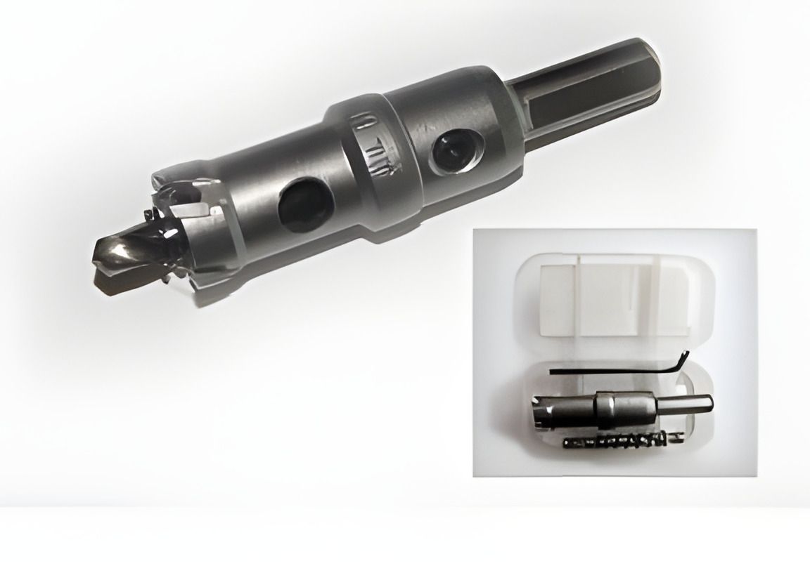 Коронка универсальная преднозначена для сверления отверстия в сталях различных марок.Может использоваться для сверления отверстий в мраморе,керамике,граните и кирпиче.В этом случае необходимо снять центровочное сверло.Твердосплавные резцы,расположеные по кромке коронки,заточены под разными углами тем самым обеспечивают качественные режущие свойства.
