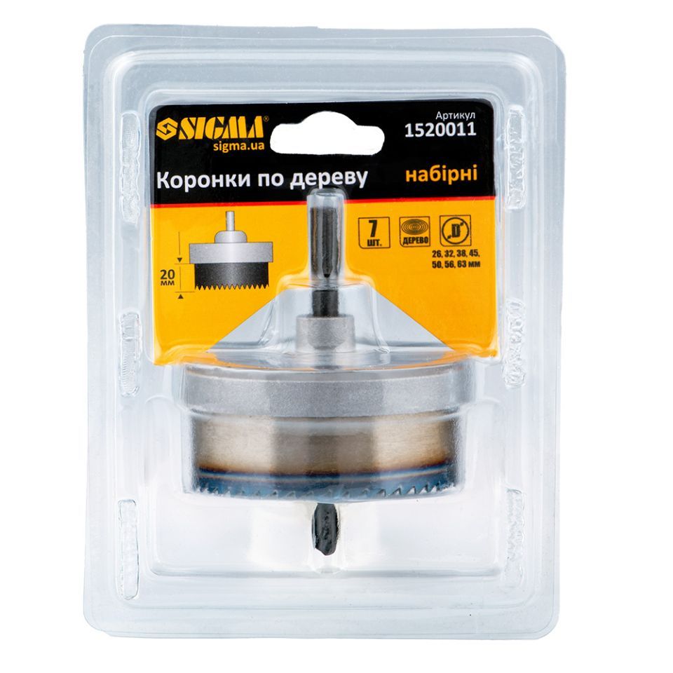 Коронки по дереву наборные 1" Ø26-63 мм высота 20 мм SIGMA 1520011