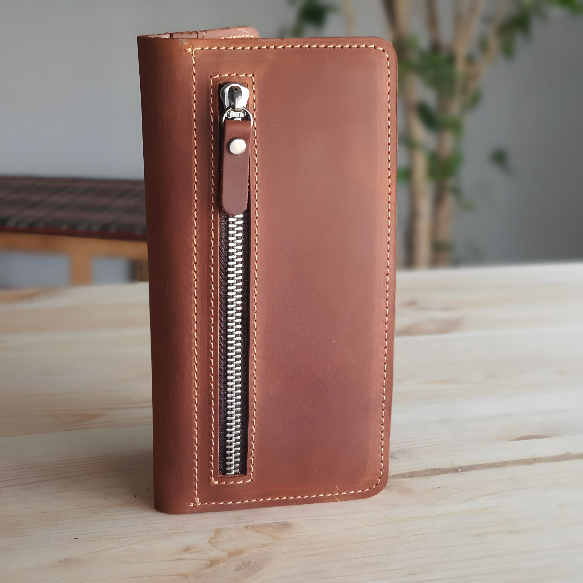 Кожаный женский купюрник коньячного цвета. Кожа плотная , вощеная - винтажная Crazy Horse.