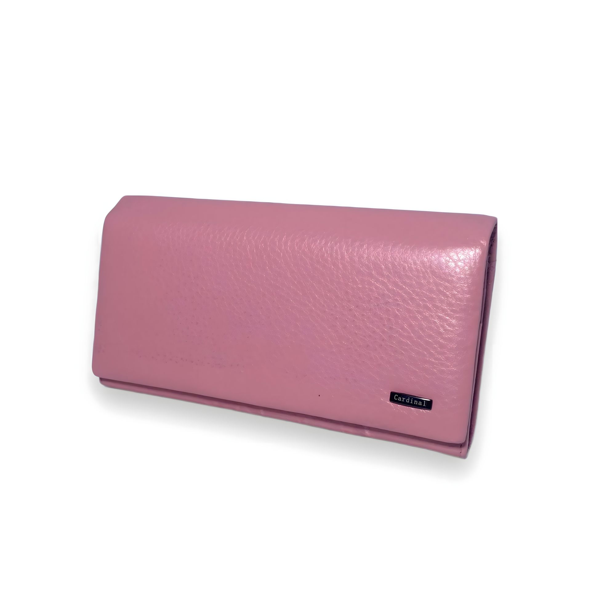 Кожаный женский кожаный 3 отделения 8 ячеек для карт размер: 18.5*10*3 см розовый