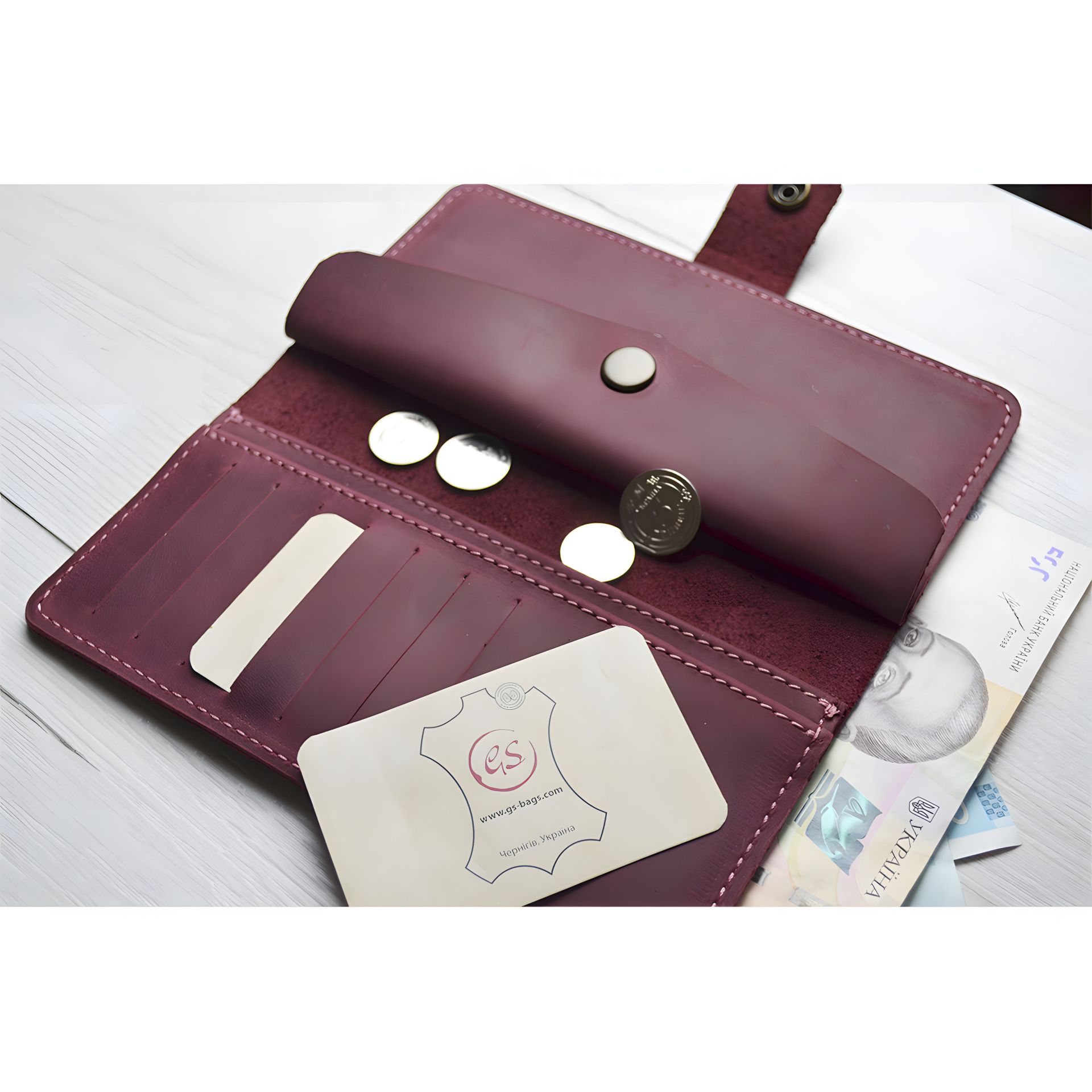 Женский кожаный кошелек GS бордовый