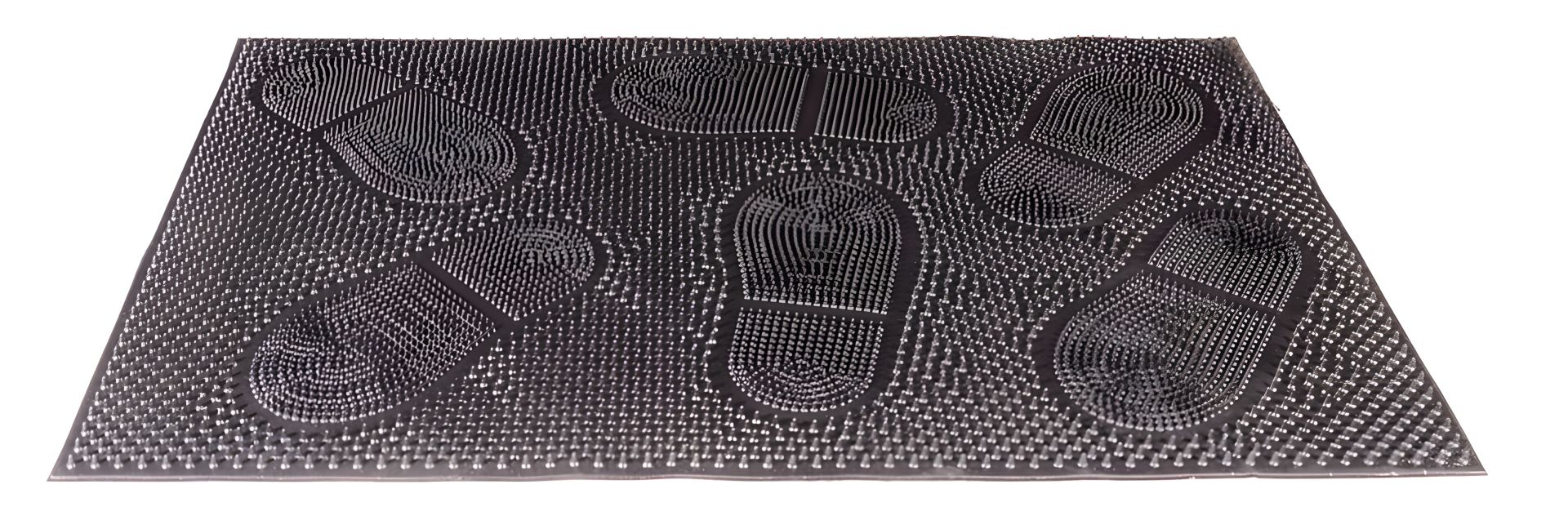 Такой коврик сочетает практичность и декоративность, обеспечивая чистоту и опрятный вид вашего входа. • «Следы»