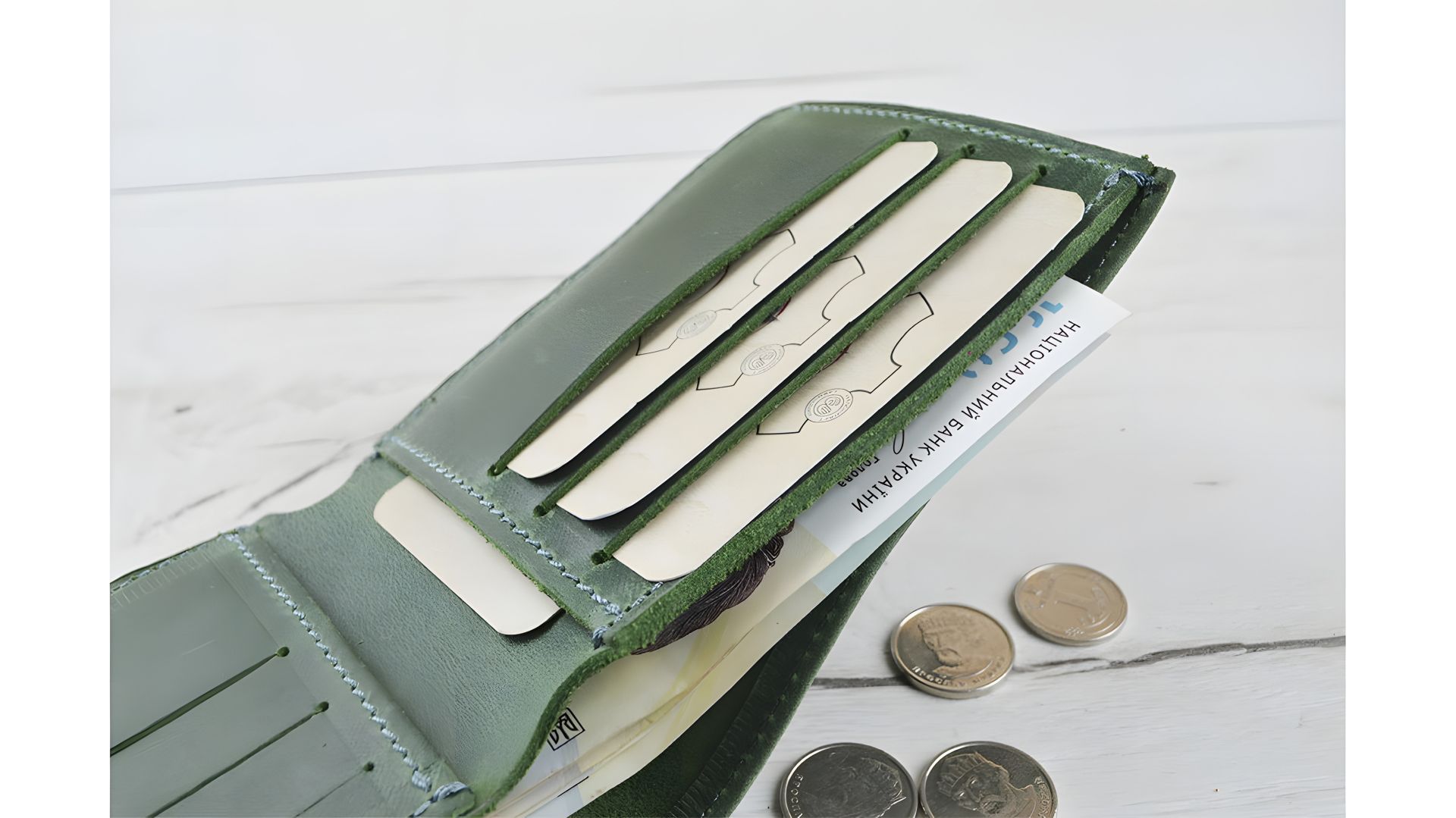 Кожаный кошелек-портмоне GS 9*12 см зеленый