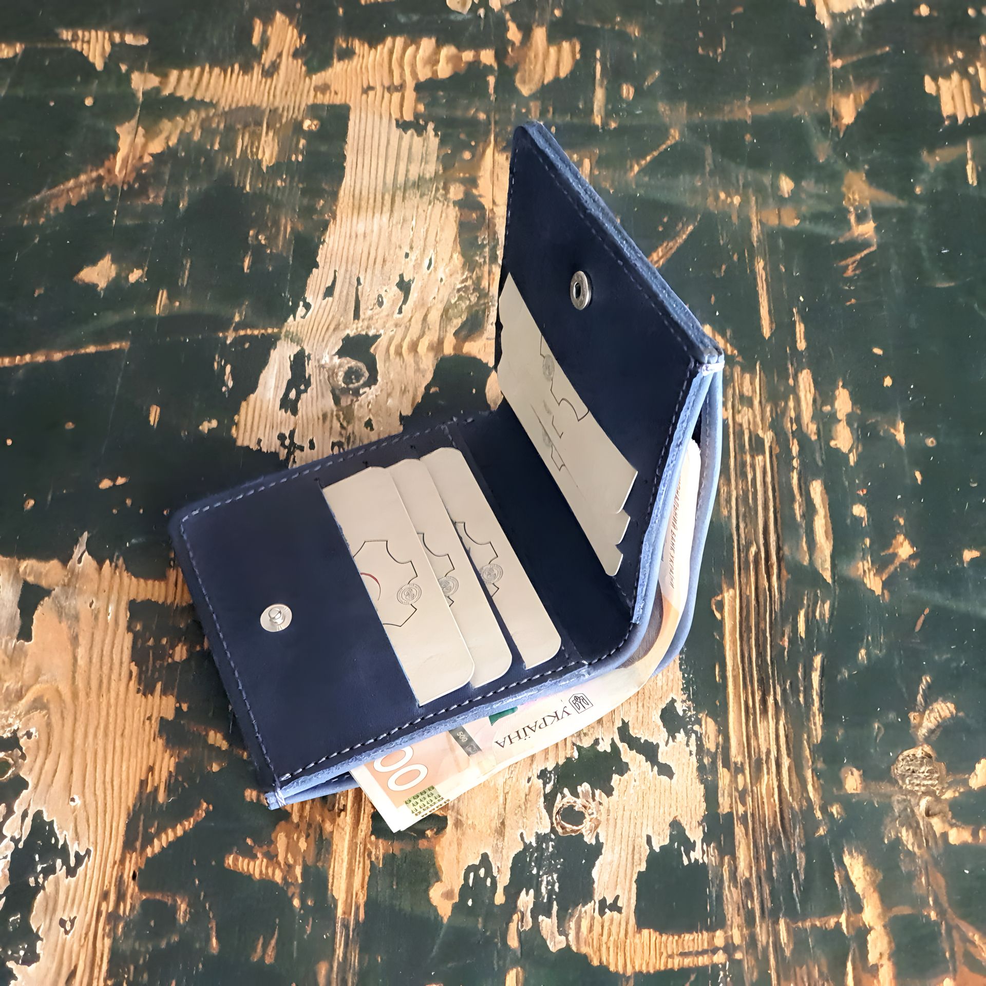 Стильный женский кожаный кошелек GS синего цвета. Пошит из натуральной, вощеной, винтажной кожи Crazy Horse ( Крейзи Хорс). Этот вид кожи отличается повышенной износостойкостью и неповторимым эффектом старния , что делает каждое изделие уникальным и неповторимым.
