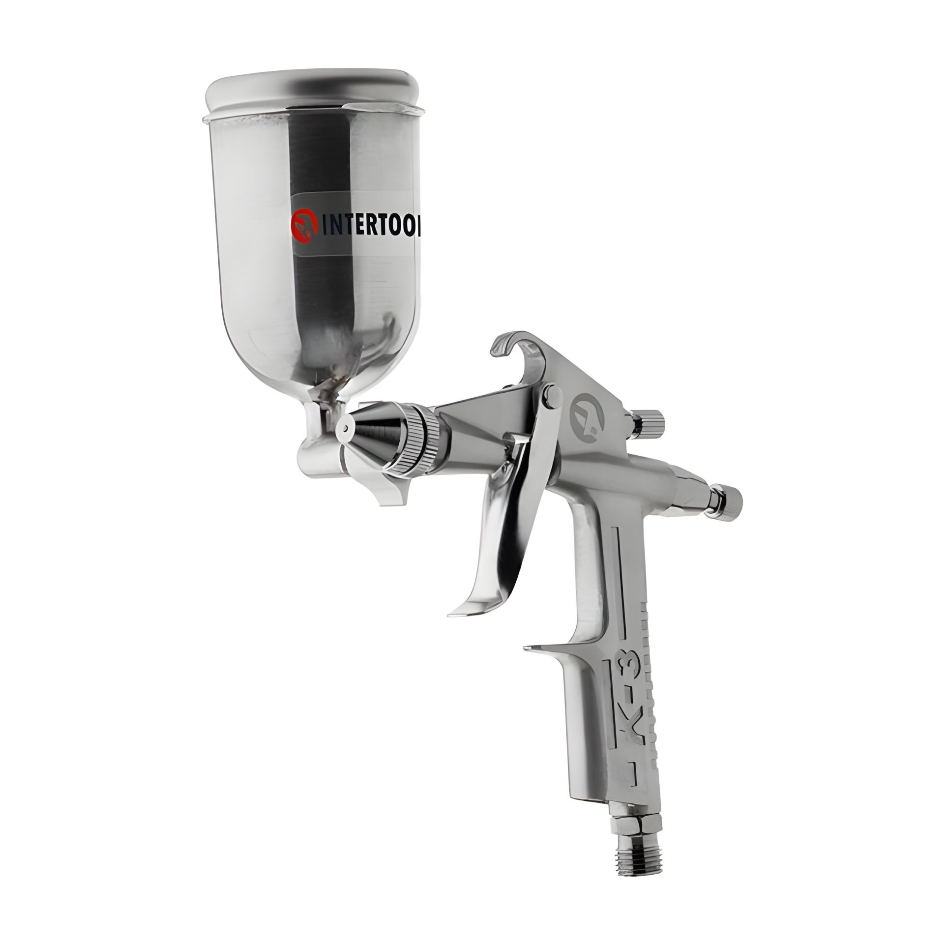 Пневматический краскопульт HP MINI, форсунка: 0,5 мм, верхний металлический бачок: 200 мл, 5 бар INTERTOOL PT-0303